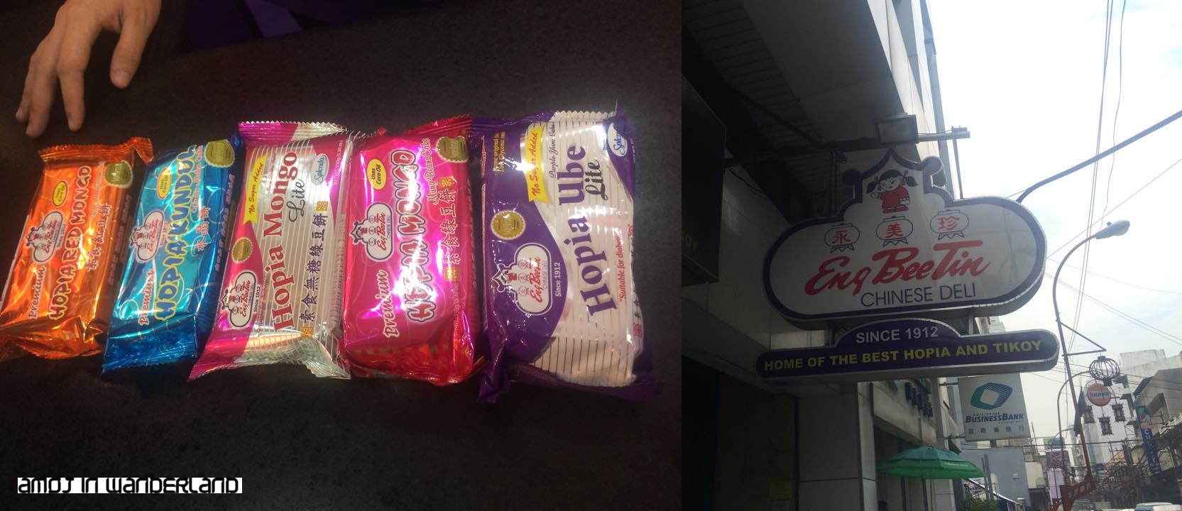 Our trip to Chinatown will not be completed without visiting Manila’s most famous Chinese pastry shop. This shop is Eng Bee Tin. This shop is famous for its “hopia,” made in different flavors, as well as “tikoy” and glutinous peanut balls. “hopia” is a popular Filipino pastry. It was originally filled with bean paste and introduced by the Fujian Chinese during the American occupation. The name came from the Chinese word “ho-pian” meaning “good biscuit”. This pastry is somehow like moon cake. According to the Eng Bee Tin website, the pastry shop was established in 1912 by Mr. Chua Chiu Hong as a simple stall in the heart of Ongpin Street, Binondo, Manila.