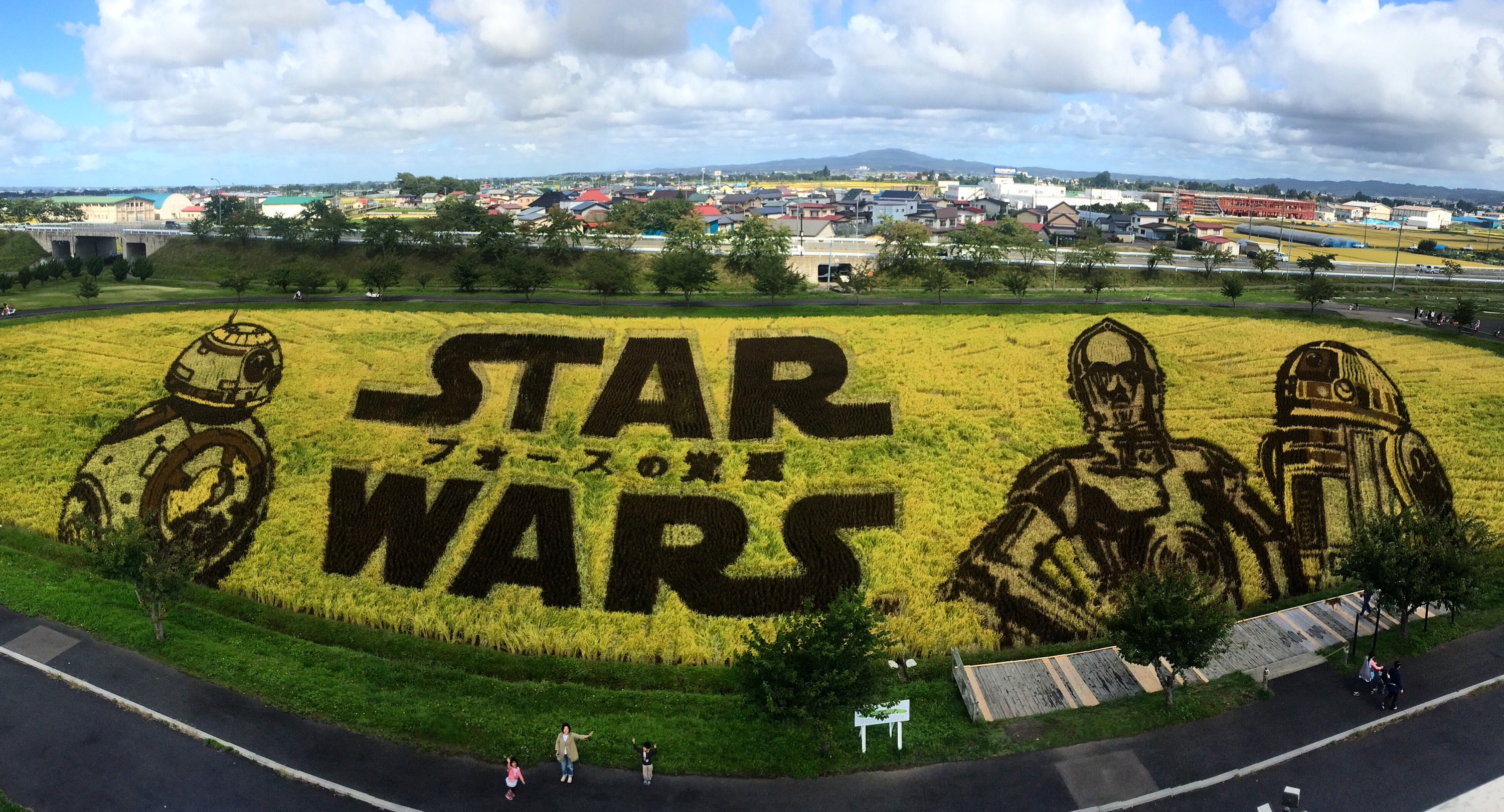 For this year, the rice fields are designed with the themes “Gone With The Wind” for the main site and “Star Wars” for the second site. It’s a good thing that they provide free shuttle rides between the two sites. There is an entrance fee though to enter the viewing platforms (200 yen for each site).