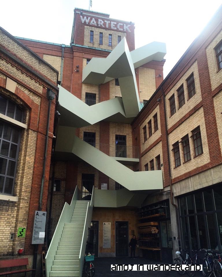 The building is known as the Werkraum Warteck pp. Werkraum is the German word for workroom as it houses cooperation between different projects, companies and people. Warteck is the name of the former brewery that was using the building. Pp stands for “Permanentes Provisorium” or “permanent provisional arrangement”. The place is now considered a cultural hub in Basel as it is now transformed into art studios and artist’s workshops, and even offices for artists, performers, craftsmen, and musicians . It was just last year that they changed the outer staircase as part of the renovation of the former malt silo.