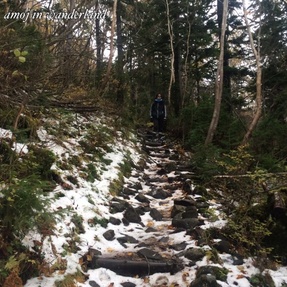 The Midoridake (green mountain) has an elevation of 2,019 meters. Surprisingly, it was already snowing in the mountain.