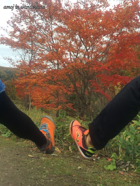 Orange leaves and orange shoes.The autumn will end soon and I have to wait again for another year to enjoy the stunning beauty of the koyo (autumn colorful leaves).