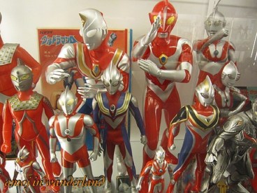 Some superheroes from Japanese tokusatsu series.The Bandai Museum is divided into four sections: the Japanese Toys, the World Toys, the Hobby Museum and the Thomas Edison Exhibit. There is also a large play area for the kids where the 5.6 meter bust statue of Gundam can also be seen.