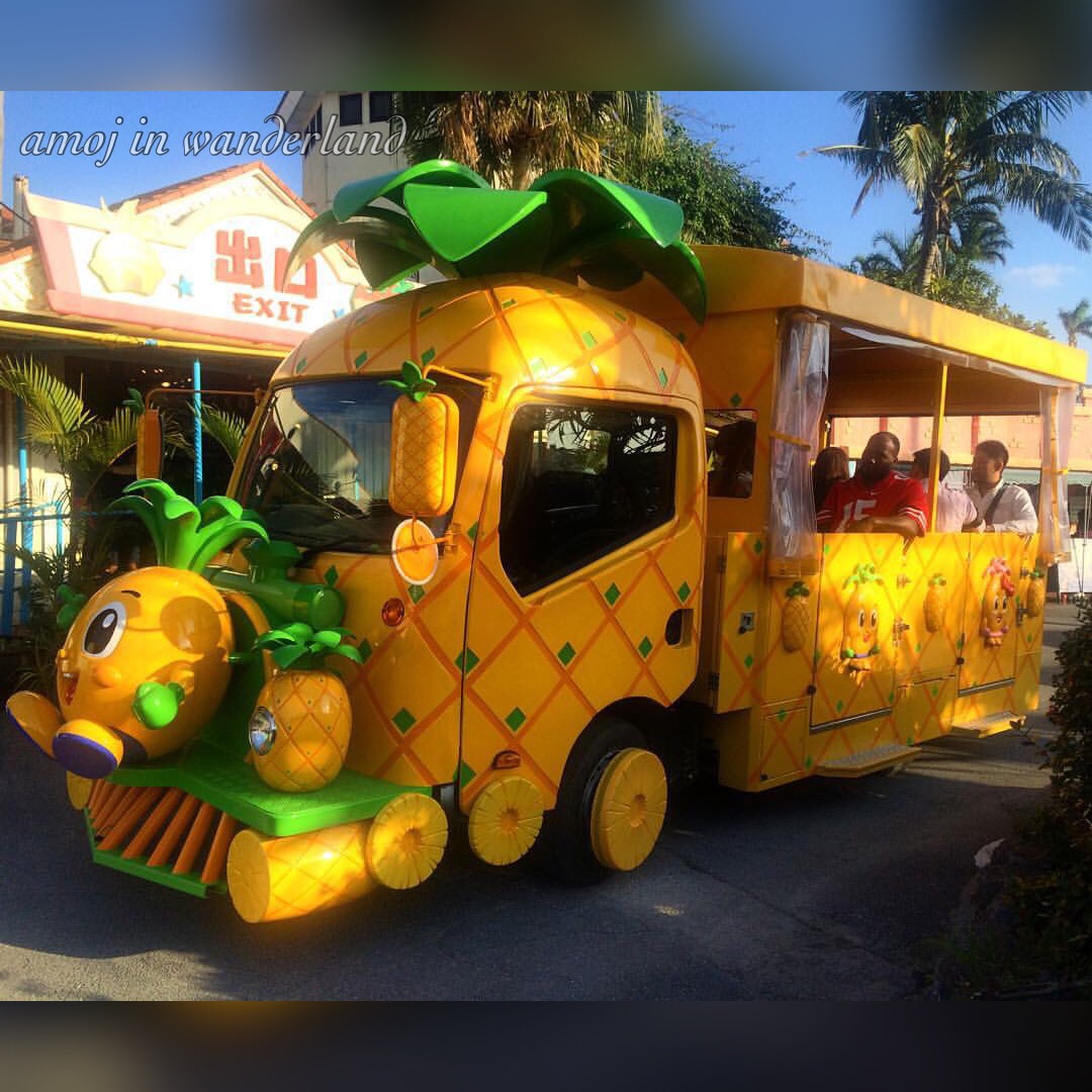 Gyokusendo CaveOutside the cave is a replica of a traditional Ryukyu Village called the Kingdom Village. It features various traditional Okinawan crafts, such as weaving, dyeing, paper making, pottery, making of musical instruments and glass blowing. I also have a chance to watch their traditional dance performance. They don’t allow taking pictures during the performance, so I took this photo. Nago Pineapple Park promotes the pineapple products of Okinawa.Nago Pineapple ParkThere are lots of pineapple inside the Nago Pineapple Park I booked the Okinawa Tour bus on my last day in Okinawa to visit the Nago Pineapple Park. Pineapple is one of the agricultural products in Okinawa, thus a park was created to promote this fruit. The park is small and actually was a shop masked as a park to lure the visitors to buy their products. Upon entry to the main shop, there are lots of free tasting of pineapple wine, pineapple juice and other pineapple products. The most interesting part of the park for me is the pineapple-styled car.Pineapple car at the Nago Pineapple Park