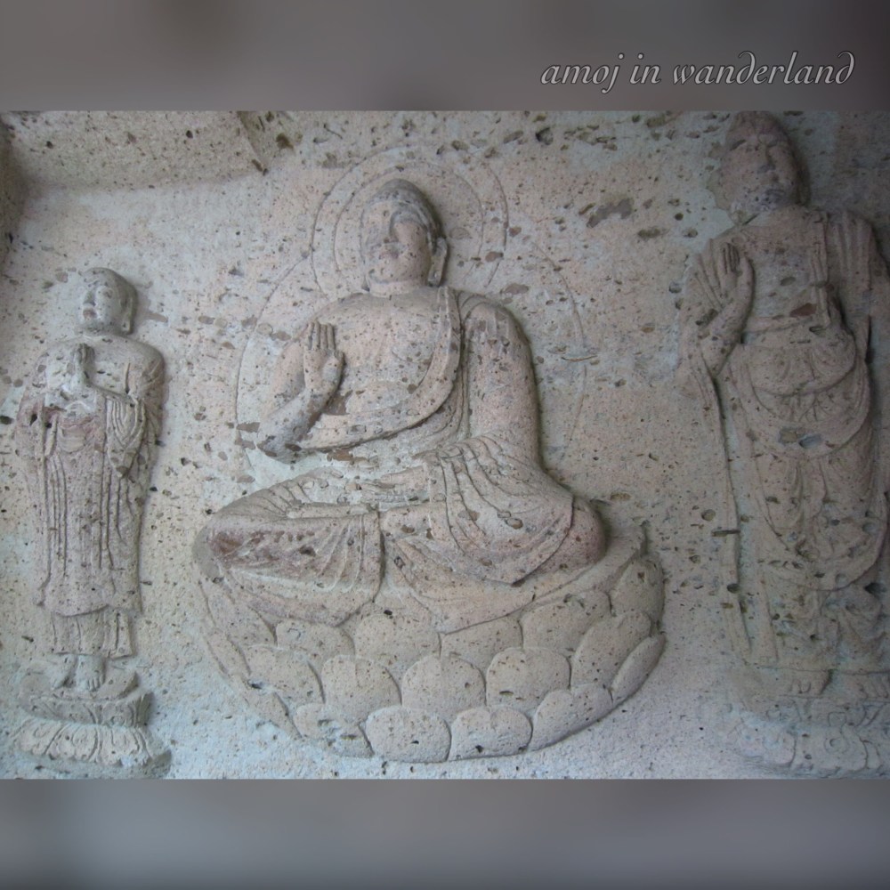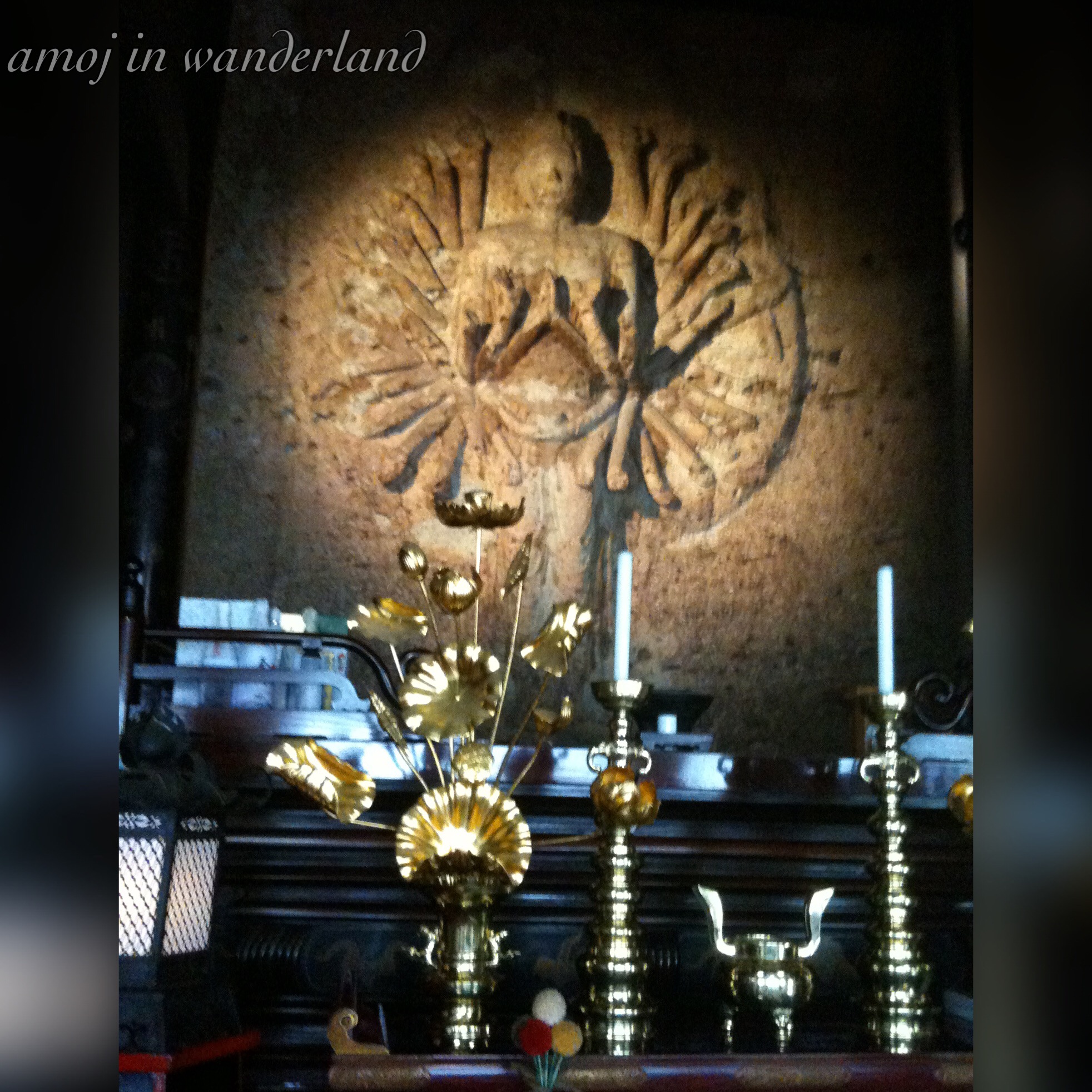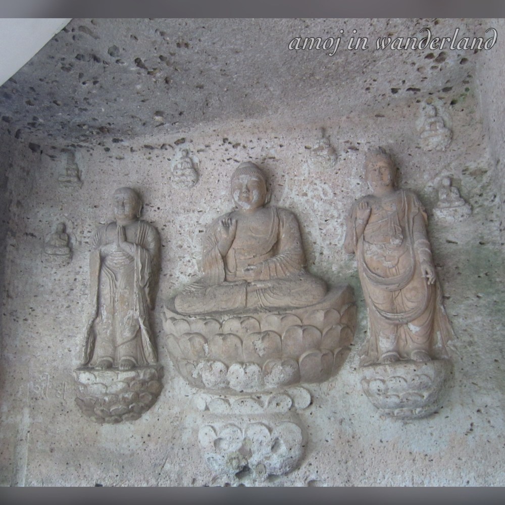 The gate of the Ooyaji Temple.When I entered the temple, the monk started to pray in front of the Senjyu Kannon Bosatsu (Oya Kannon). It is a 4-meter high image of the Goddess of Kannon with thousand arms carved on the wall of the temple. They forbid taking pictures inside, but I did took some pictures (i just hope their Gods will forgive me).