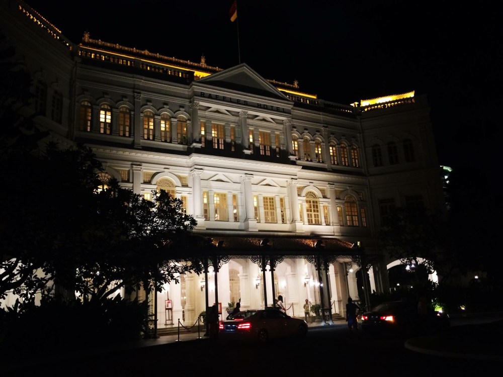 Raffles HotelIt was our second night in Singapore when my American friend and I decided to go to Raffles Hotel to have a sip of the famous Singapore Sling. It is a gin-based cocktail developed in 1915 by a Hainanese bartender named Ngiam Tong Boon at the Long Bar located inside the 5-star luxury Raffles Hotel. Widely regarded as the national drink of Singapore, the Singapore Sling was celebrating its 100th year in 2015. Raffles Hotel itself was already 128 years old, being built in 1887.