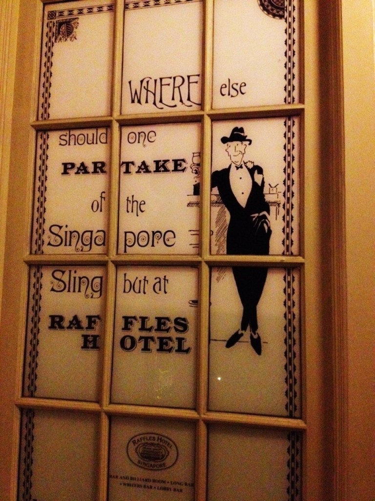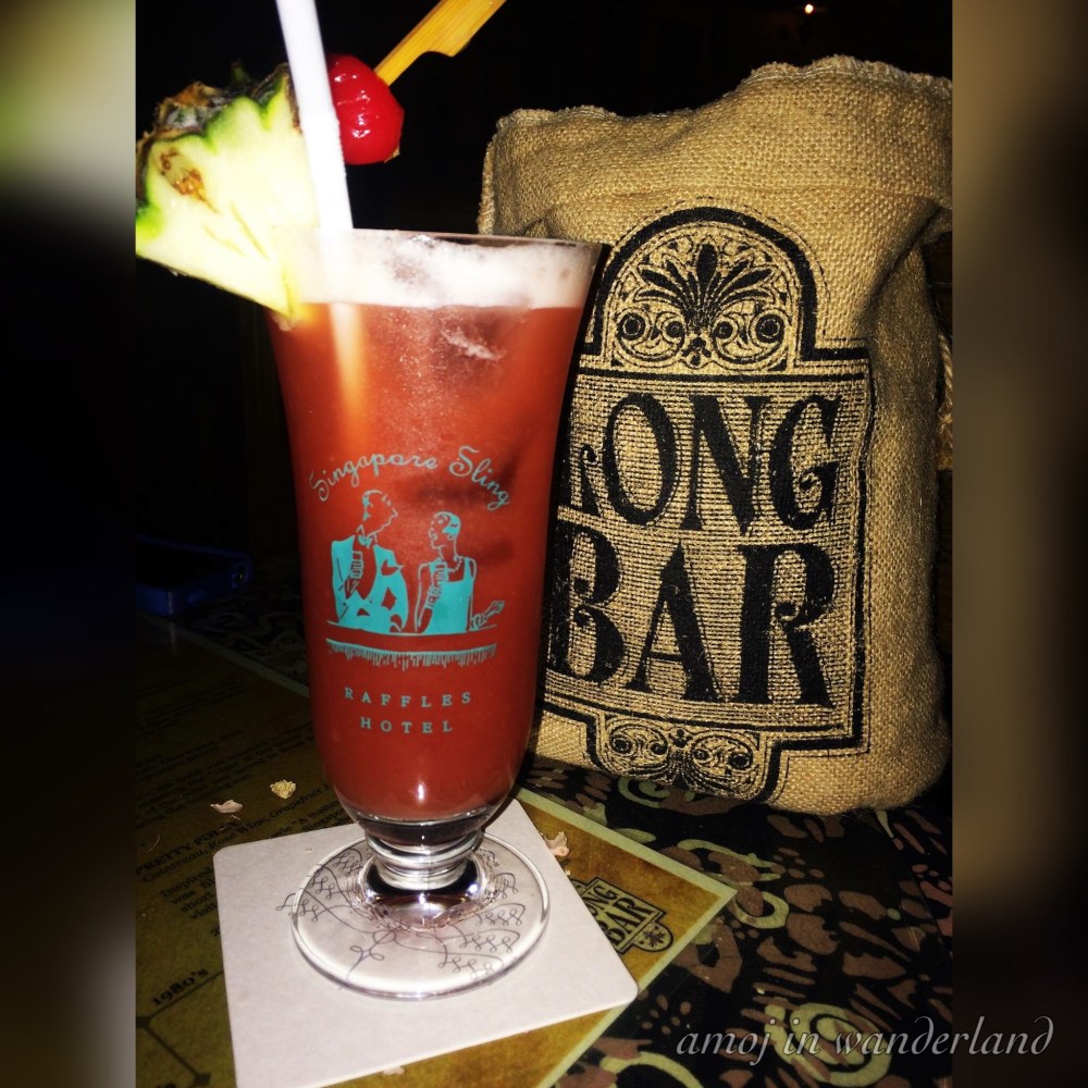 The Singapore Sling at the Long Bar.And of course, we did what we were supposed to do there- to have a taste of the world famous pink cocktail. It is pricey costing a shocking $27. But that was our first Singapore Sling at the place where it was invented, so I guess it’s ok. Anyway, it was fun to enjoy the Singapore Sling on its 100th year.