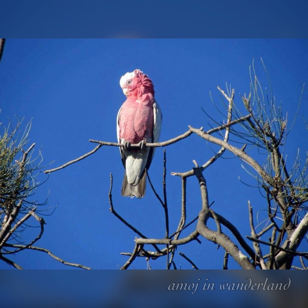 Galah or rose-breasted cockatooThe galah or rose-breasted cockatoo (Eolophus roseicapilla) are pretty birds in pink found in almost all parts of Australia. I noticed their distinctive pink plumages as they hang around the branches of the trees in Perth. The term galah is derived from gilaa, a word in the Aboriginal languages.
