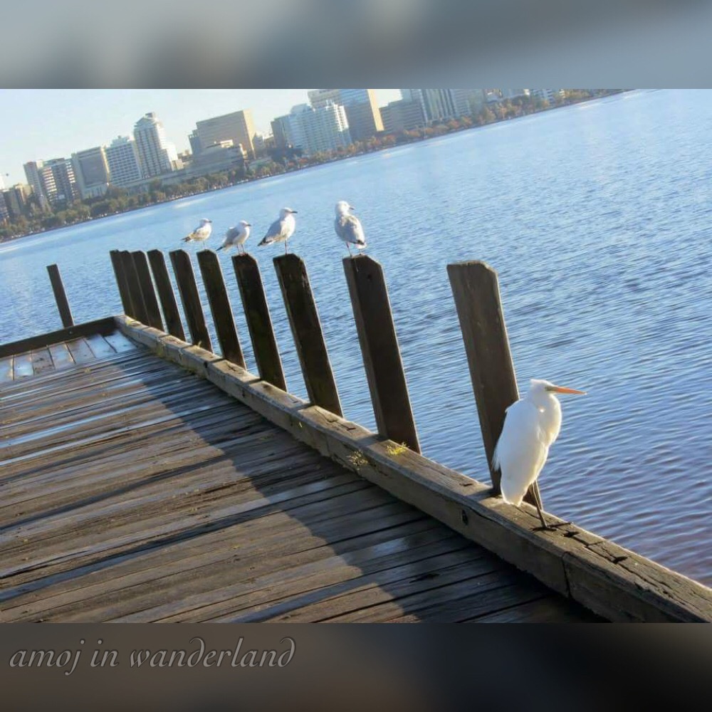 Seagulls and a great egret were looking for food at the Swan River.Australia is famous for exotic animals. So when I was in Perth for less than a week, I was fascinated with the different birds I saw flying freely around the city. It was nice to see birds other than crows.
