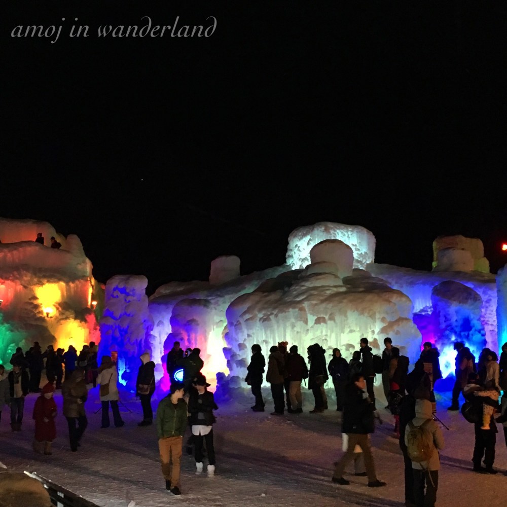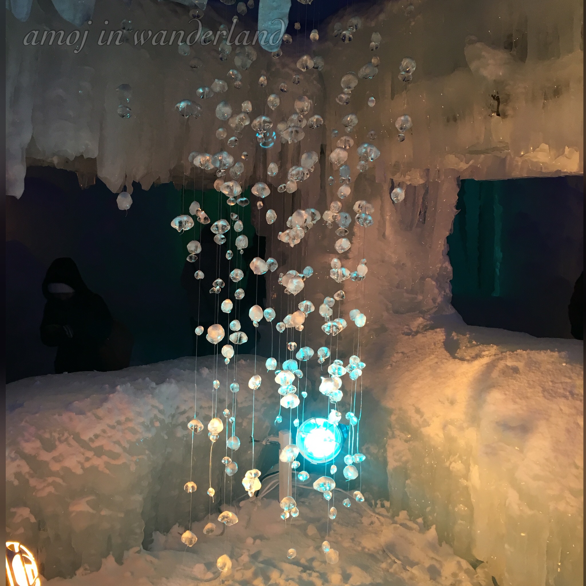 Stalactite-looking ice sculptures. Structures looking like walls of the caves.What I’ve noticed is that the ice sculptures were made in abstract forms like stalactites and stalagmites as compared to the very intricate sculptures in Sapporo. The colored lights however made these sculptures beautiful.