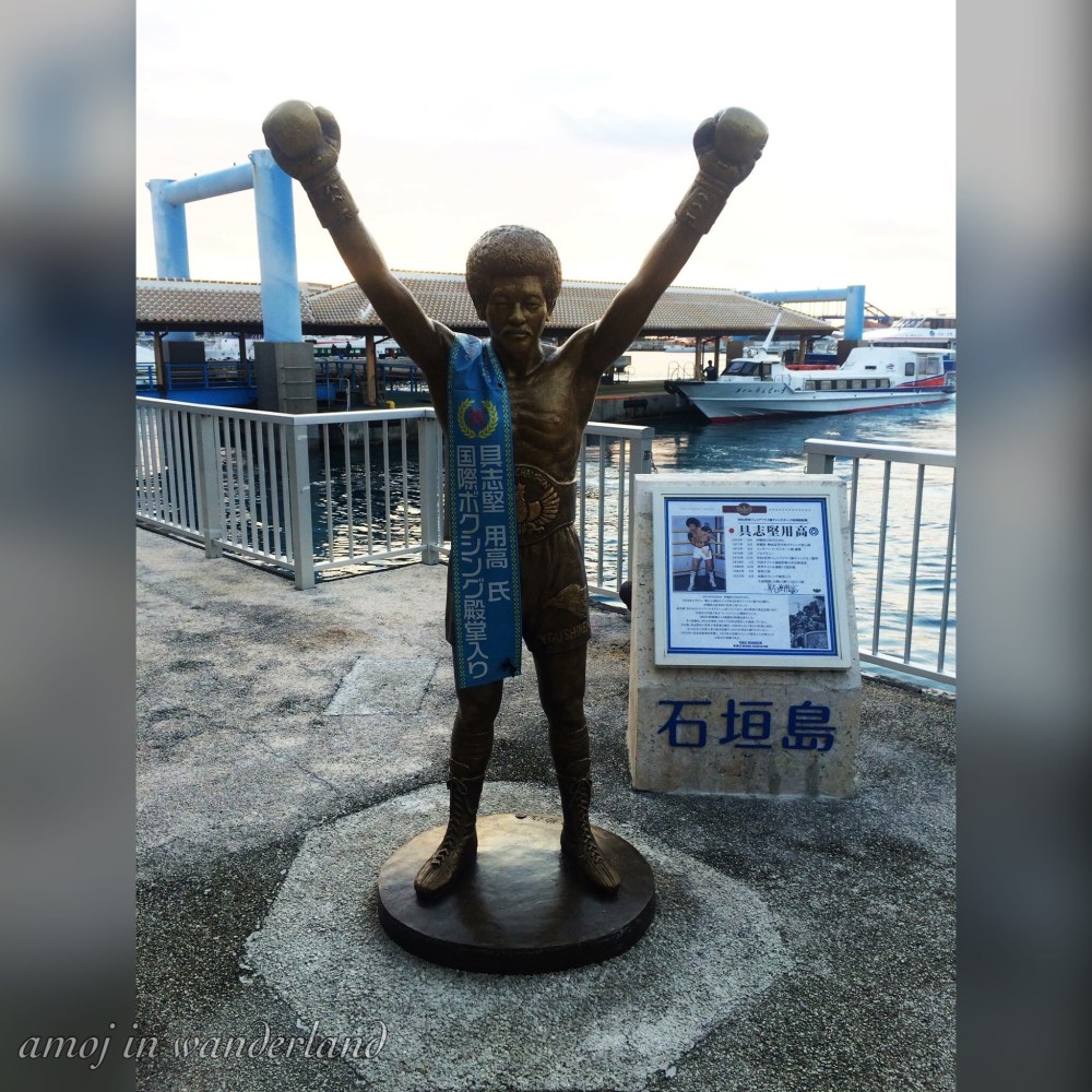 Yoko Gushiken defended the WBA title for 13 times.He was born in Ishigaki in June 26, 1955 making him a true pride of this island. The city erected his bronze statue on December 26, 2013 at the Ishigaki Port Rito Terminal. This is the place where Gushiken boarded a ship to go to the main island of Okinawa when he was 15 years old.