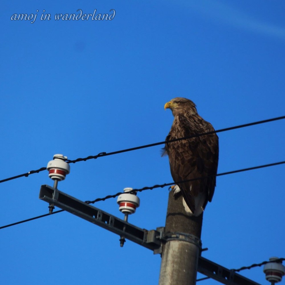 Our goal of the day: White-tailed sea eagle.We decided to go back home and while we were on our way, we were all surprised. We finally saw a sea eagle. It was a white-tailed sea eagle (Haliaeetus albicilla) perched on an electric post in all its glory. And it was not hard for us to take pictures since he or she is not flying away from us. It was a great finale for our birdwatching on that day.