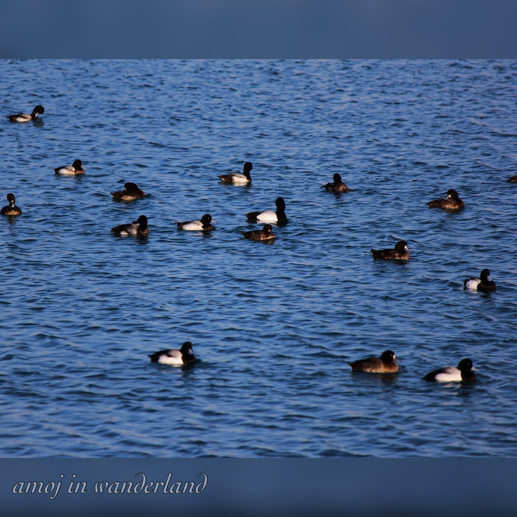A raft of great scaups.To continue my story about our birdwatching in Tokachi yesterday, our next goal was to see sea eagles. We went to Toyokoro, Taiki and finally to Hiroo but to no avail, it was hard to catch a glimpse of this bird of prey.