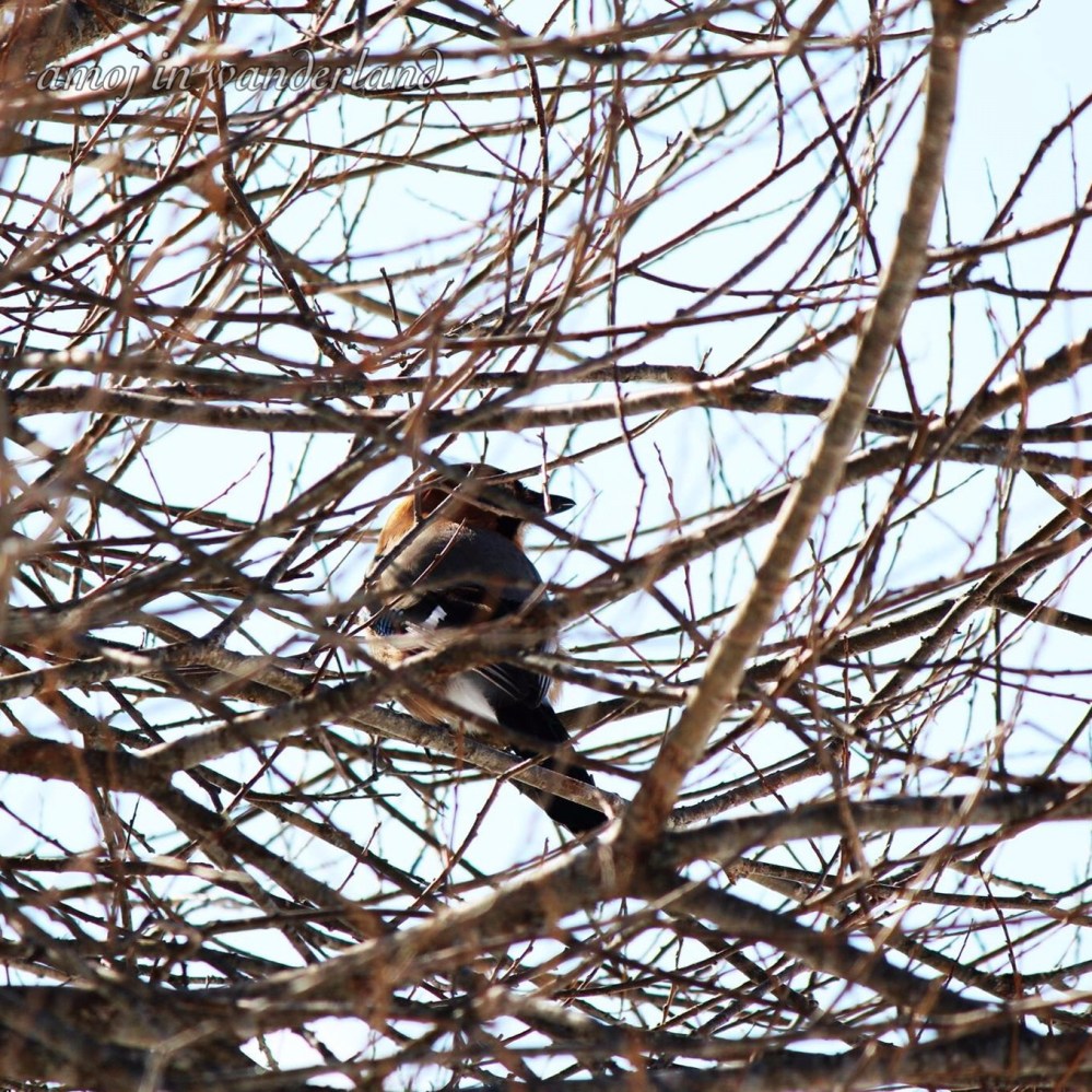 A Eurasian jay.We also saw a Eurasian jay (Garrulus glandarius). My friend told me that jays belong to the same family as the crows. In contrast to the crows, jays have colorful plumages and store food for winter. He also added that jays are called “jays” because of their “jay” sound. I haven’t heard the jay though voicing out that sound. But anyway, jays are well known for their sound mimicry. They often sound like a different species.