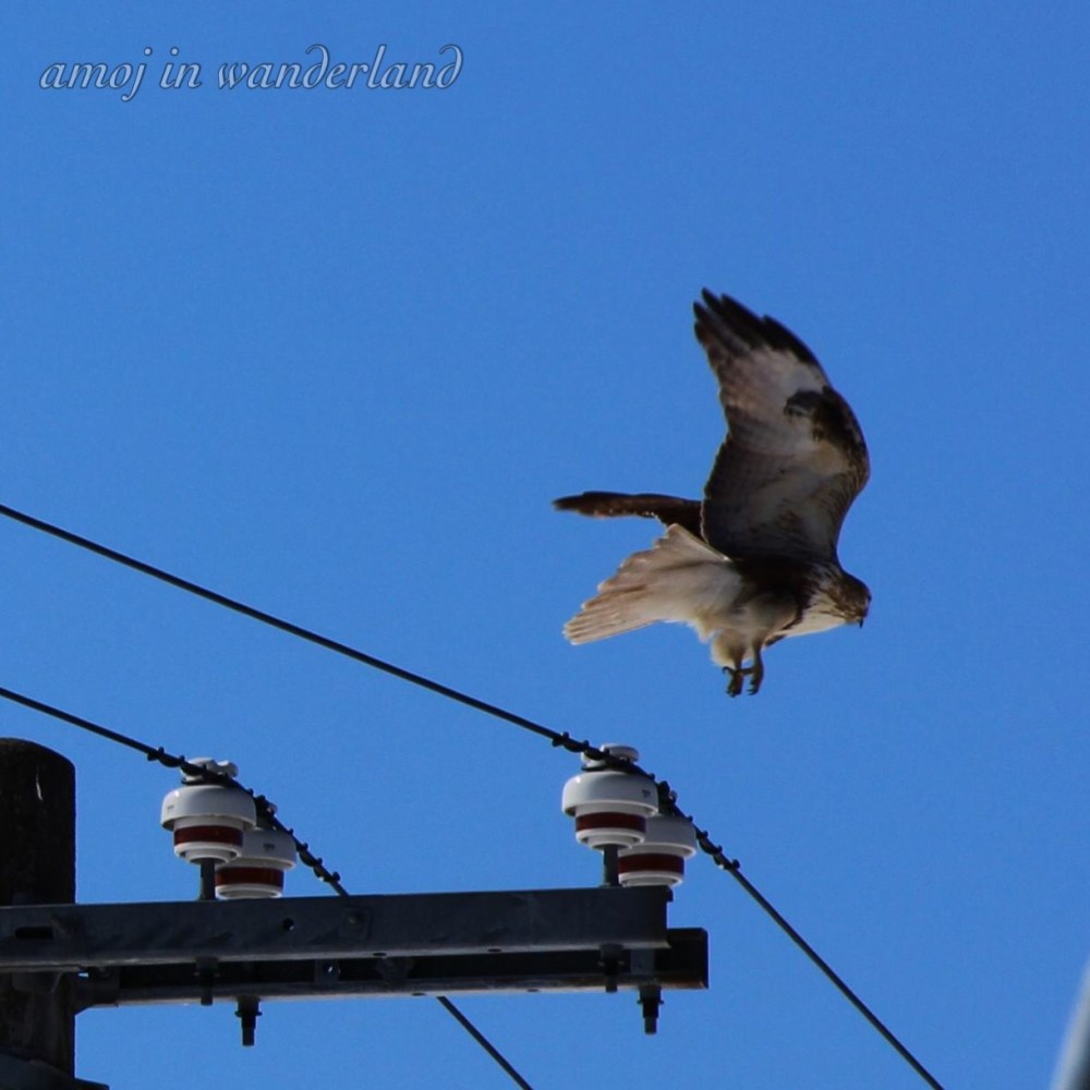 A common buzzard flying away from us.Along the way, we spotted a number of common buzzard (Buteo buteo) at the top of the electric posts and tall trees. Common buzzards are birds of prey who favor hunting over open lands. My friend said he wants to see the rough-legged buzzard but all we saw are the common buzzards.