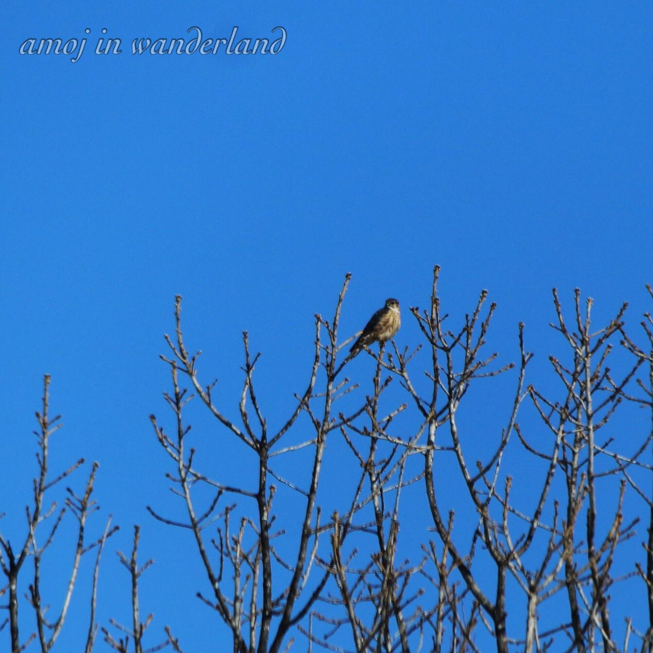 A Merlin .We saw another bird of prey, merlin (Falco columbarius) at the top of a tree. It was somehow smaller than the buzzard.