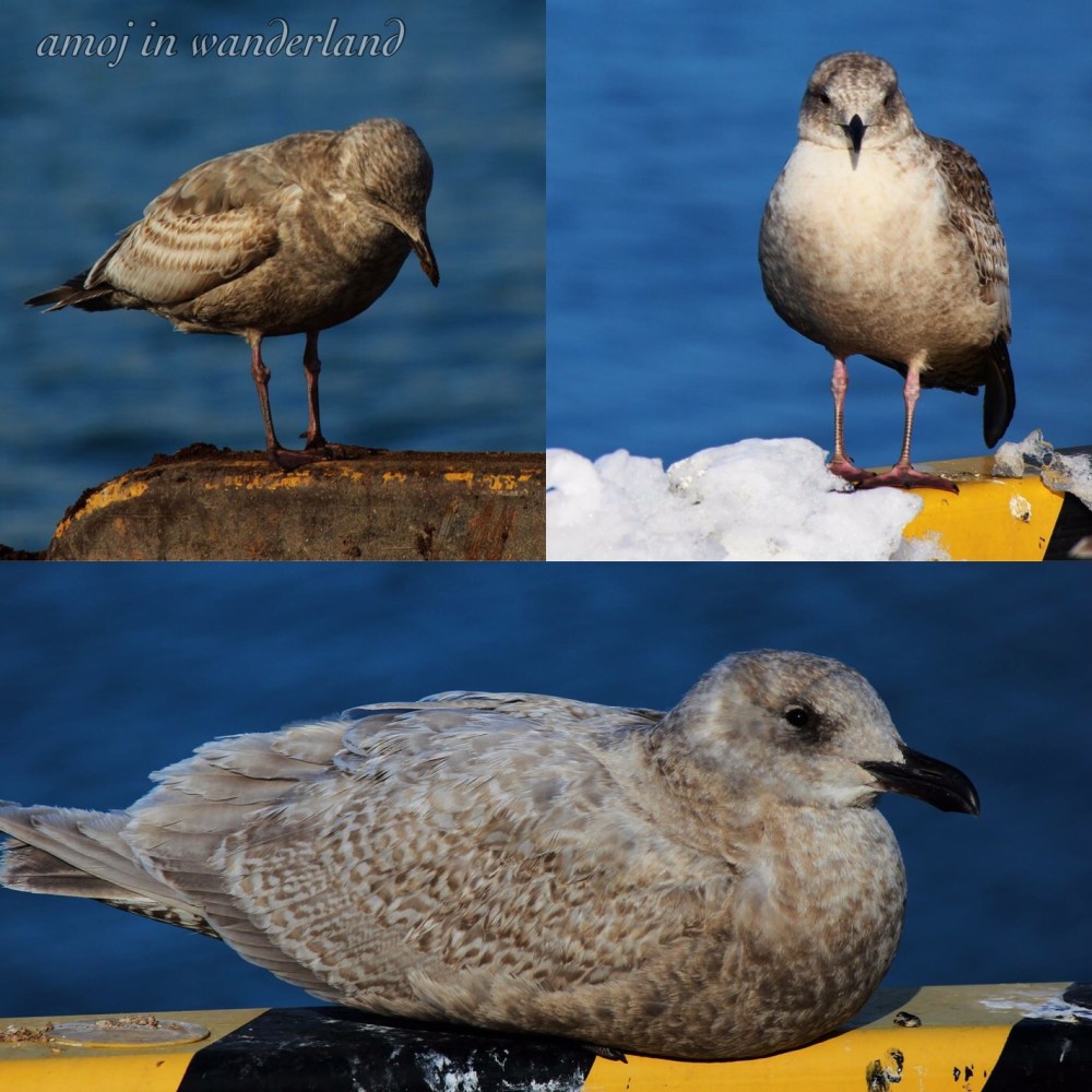 Juvenile gulls (From left to right, top to bottom): Common gull, Slaty-backed gull and Glaucous-winged gull.