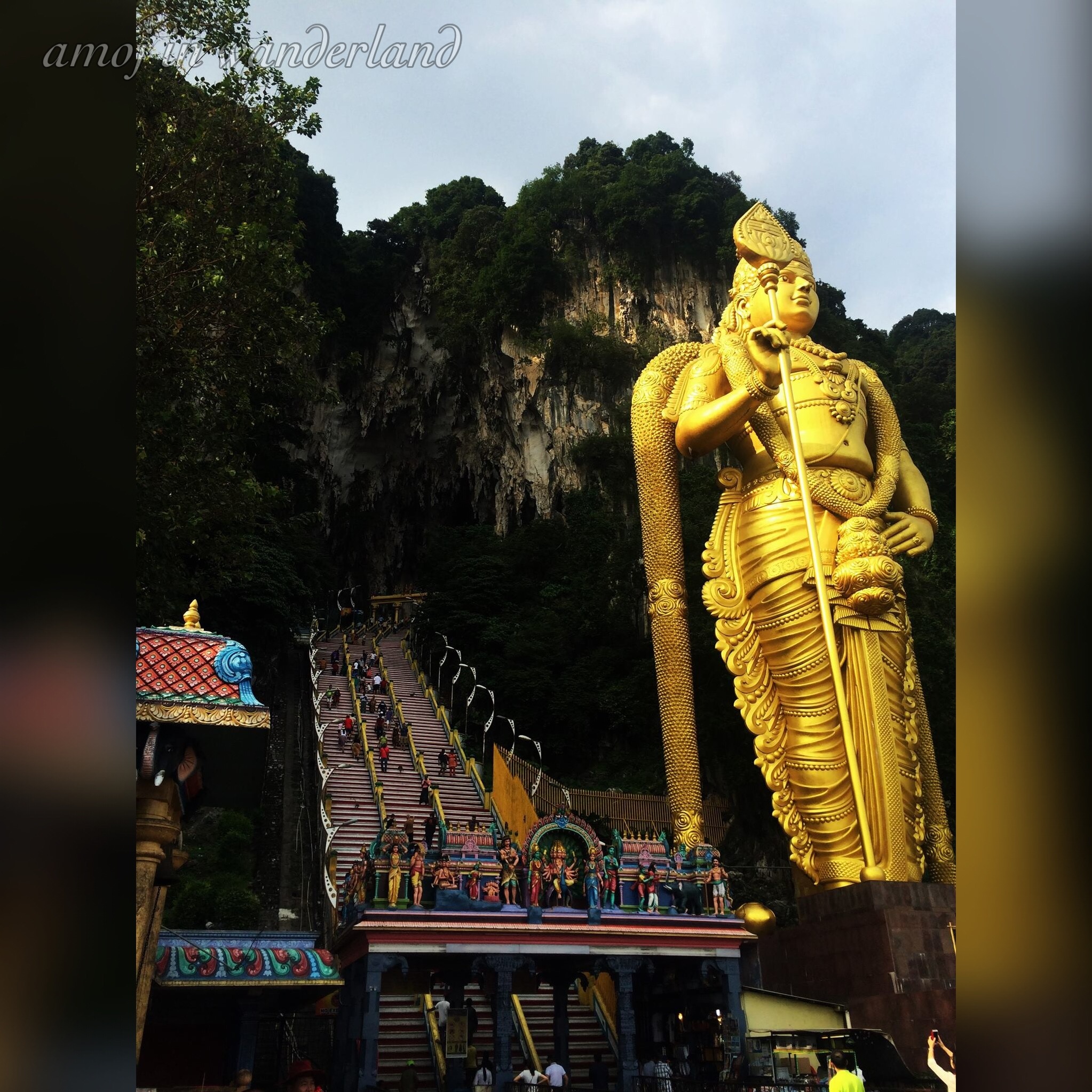 Entrance Shrine at the Batu Caves.After the Ramayana Caves, we went to the main attraction of the Batu Caves. Standing at 140 ft is the golden statue of Lord Murugan. Hailed as the tallest Lord Murugan statue in the world, it took 3 years to construct and was finally unveiled in January 2006.