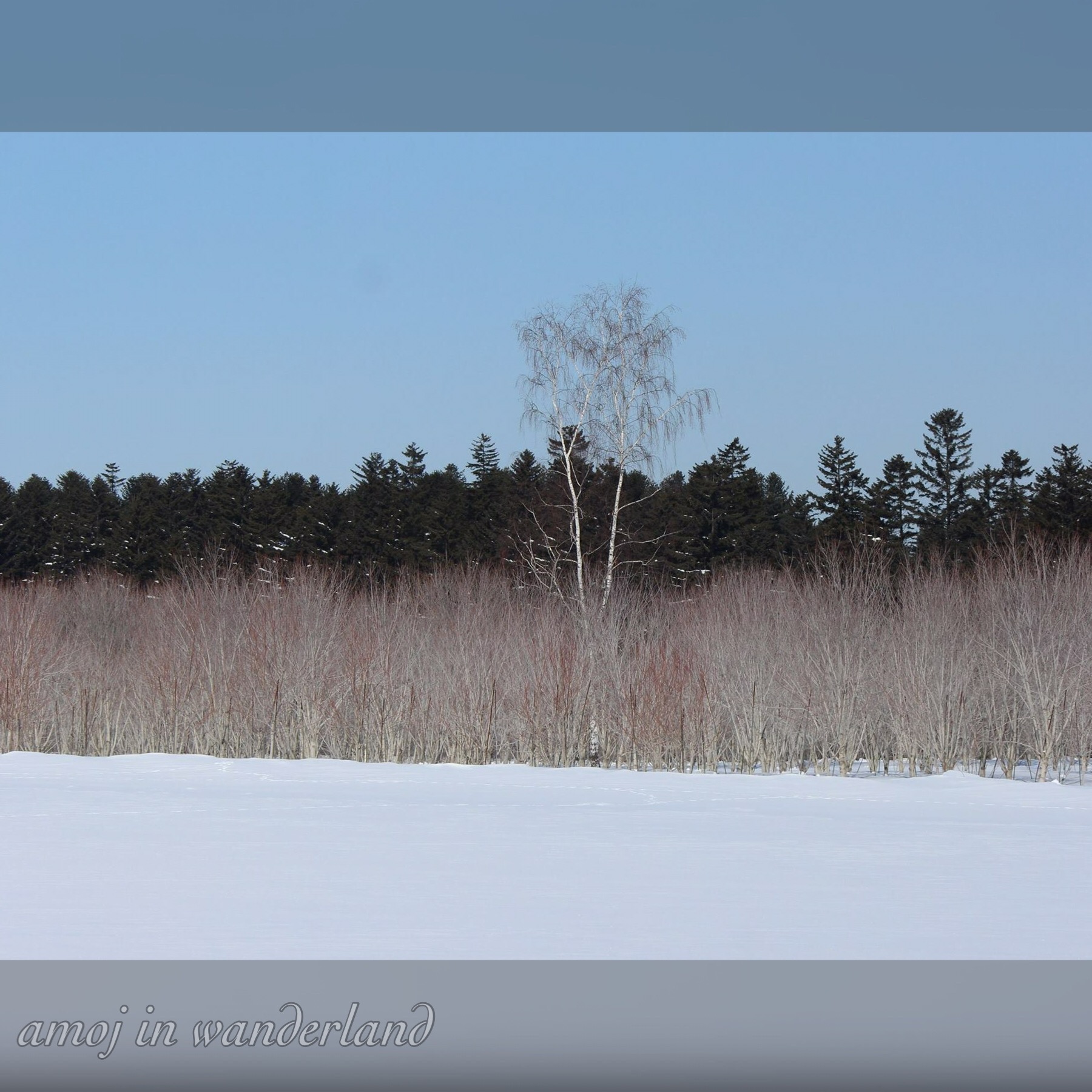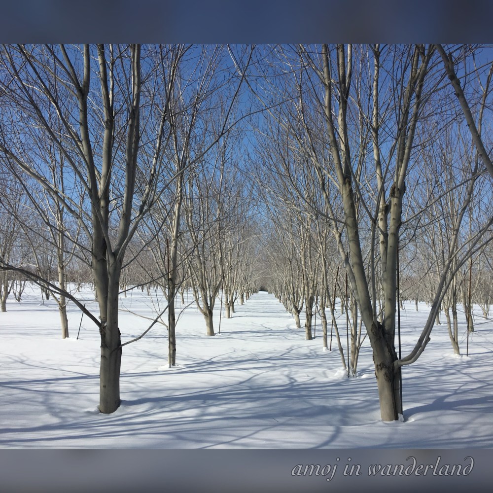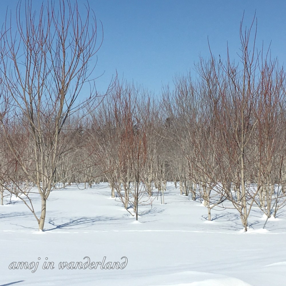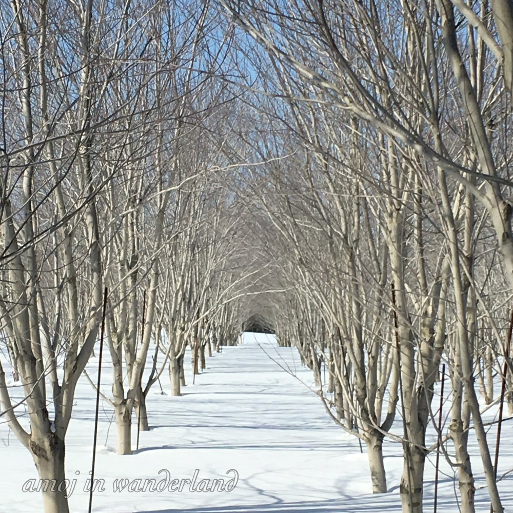Maple trees protruding from the thick snow.The tunnel of barren maple trees protruding from the thick snow is like a gate leading to somewhere magical. I guess this symbol of autumn is also worthy of a glance in winter.The tunnel of barren maple trees in winter.