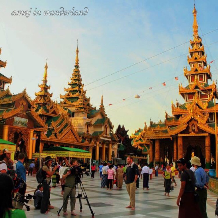 Foreign film or TV crew inside Shwedagon.No wonder the Shwedagon is referred to in Myanmar as “The Crown of Burma”.
