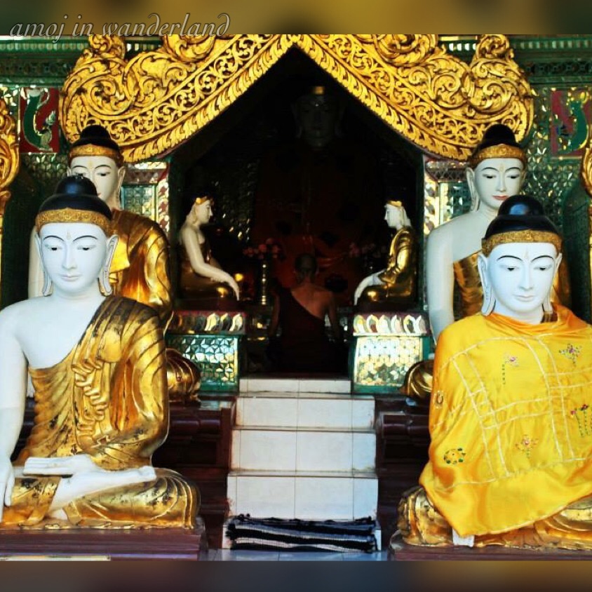 There are many small temples inside the Shwedagon compound.The Shwedagon Pagoda is considered the most sacred Buddhist pagoda in Myanmar. It is believed to contain the eights strands of hair from the head of Gautama Buddha. Other holy relics include the staff of Kakusandha, the water filter of Koṇāgamana and a piece of the robe of Kassapa. When we entered the compound, we needed to remove our shoes and walk around barefooted.