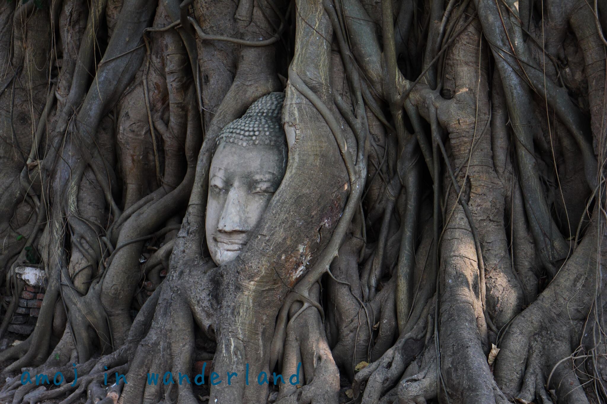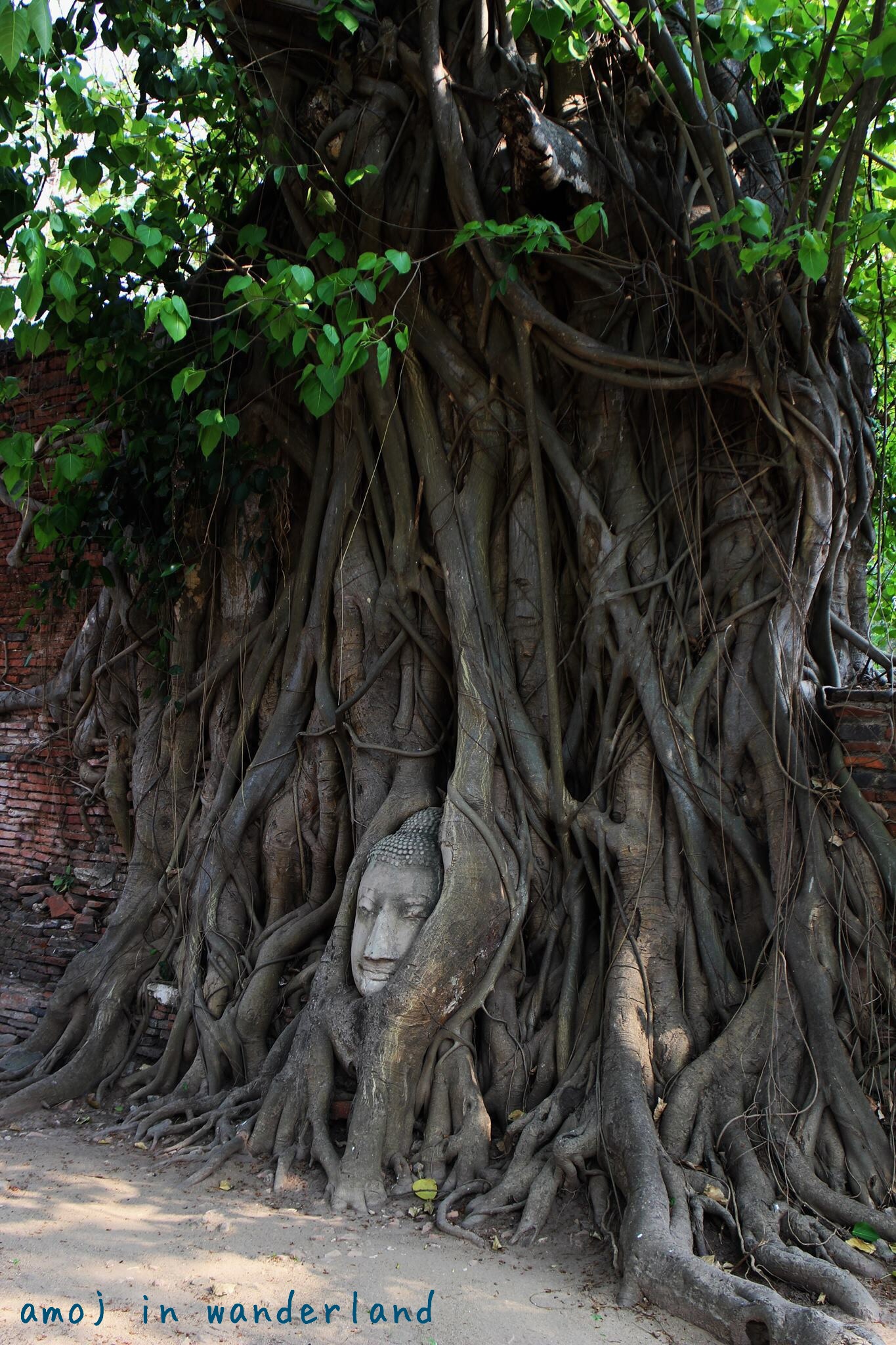 The Wat Mahathat is the most popular among the Ayutthaya temples because of the iconic Buddha head. It is engulfed in the Bodhi tree trunk. It was said that the tree just grew around and overgrown the head when the temple was abandoned before.
