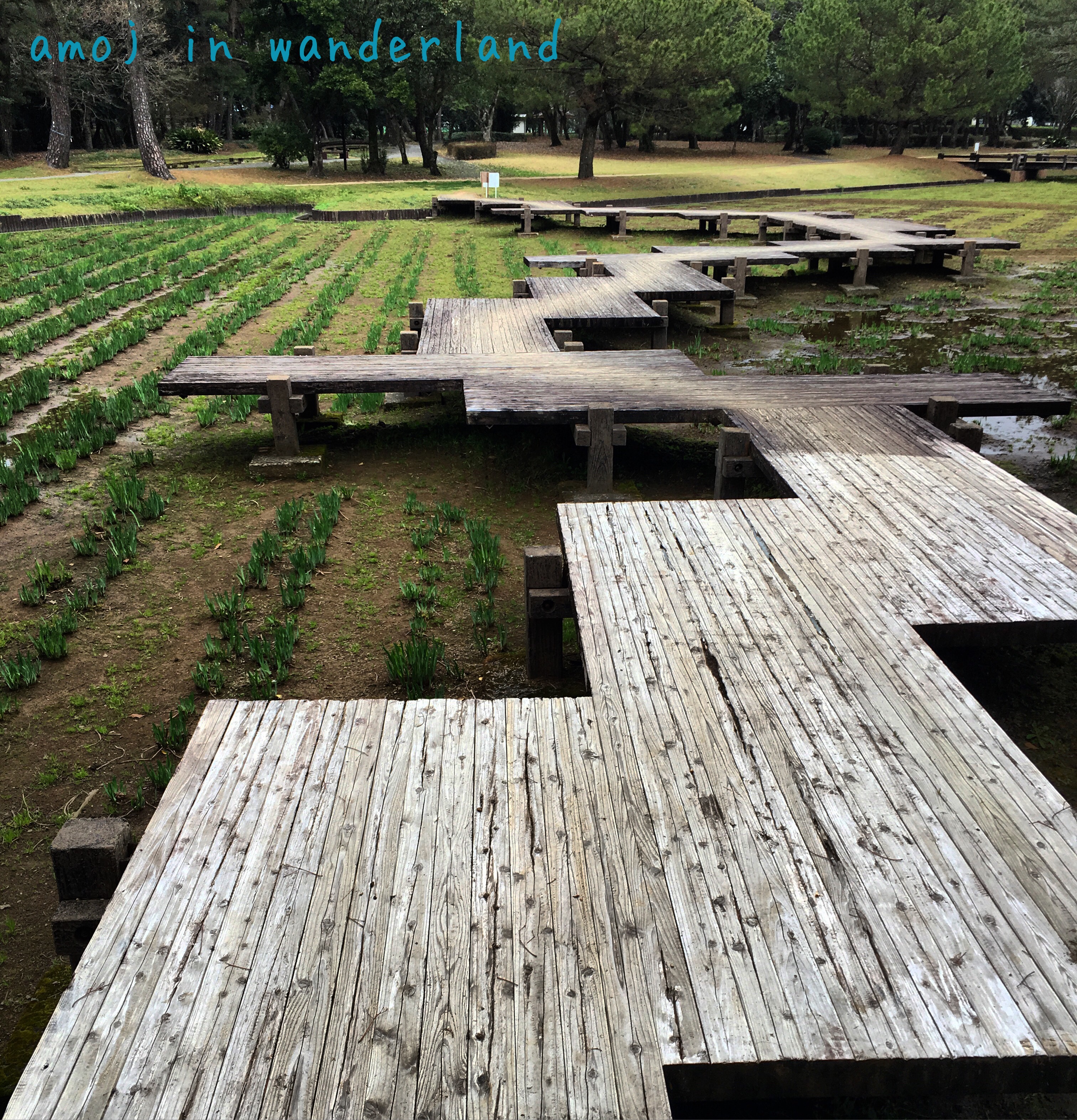 We wandered around the park after arriving there after a 25-minute bus ride. The park is not that spectacular, but it’s a nice place to have fun with nature. There are many types of birds lurking around the trees, unluckily I am not in my “birdwatcher” mode. What took my attention was the wooden zigzag bridge. There are supposed to be Japanese iris in that area. They are not yet in season, so the bridge became an art piece in the middle of a forest.