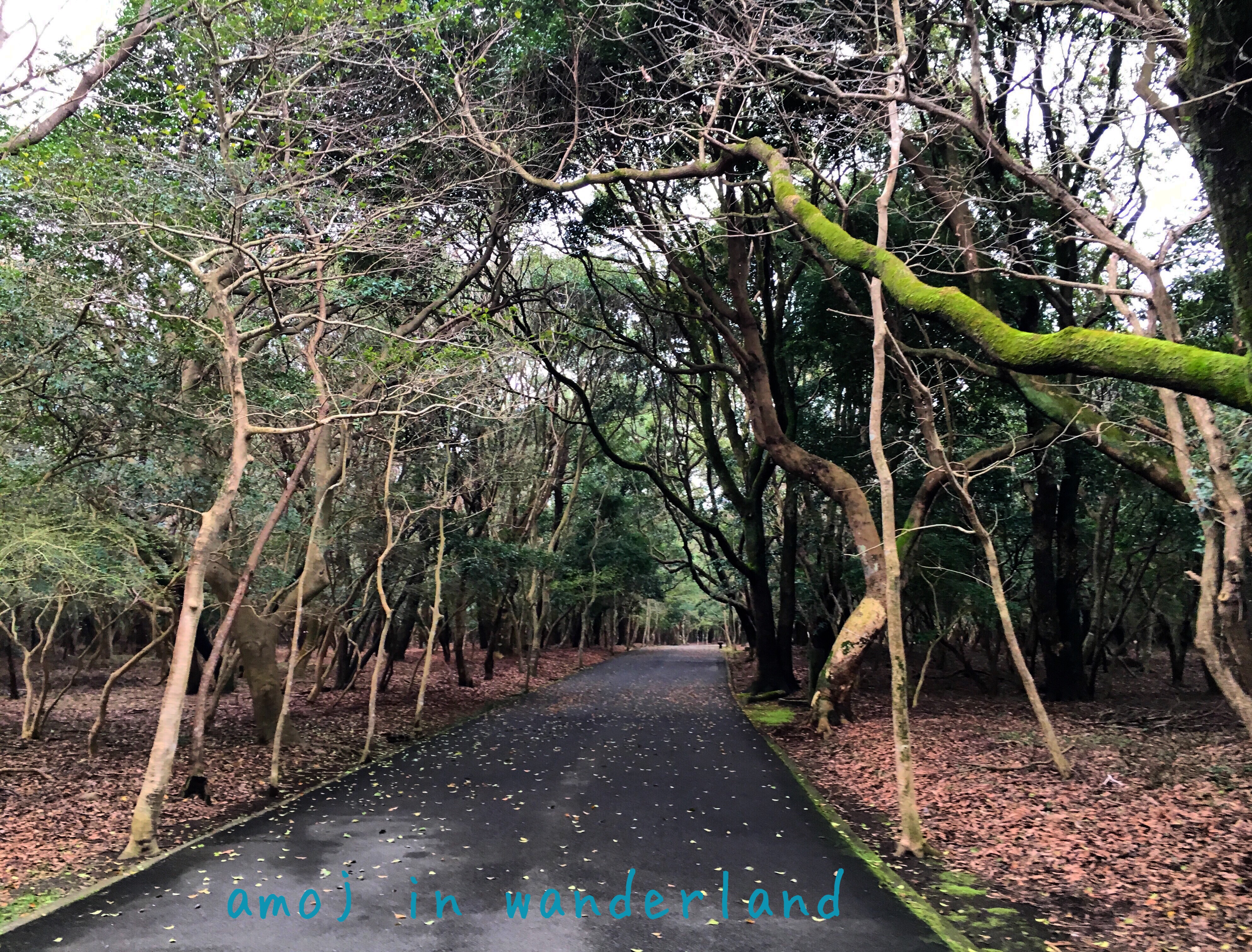 The forest is located in a remote area in Miyazaki. We have to wait for an hour for the bus to go to the city center to arrive. We just spent our time looking at the trees, a few flowers, and some flying birds.