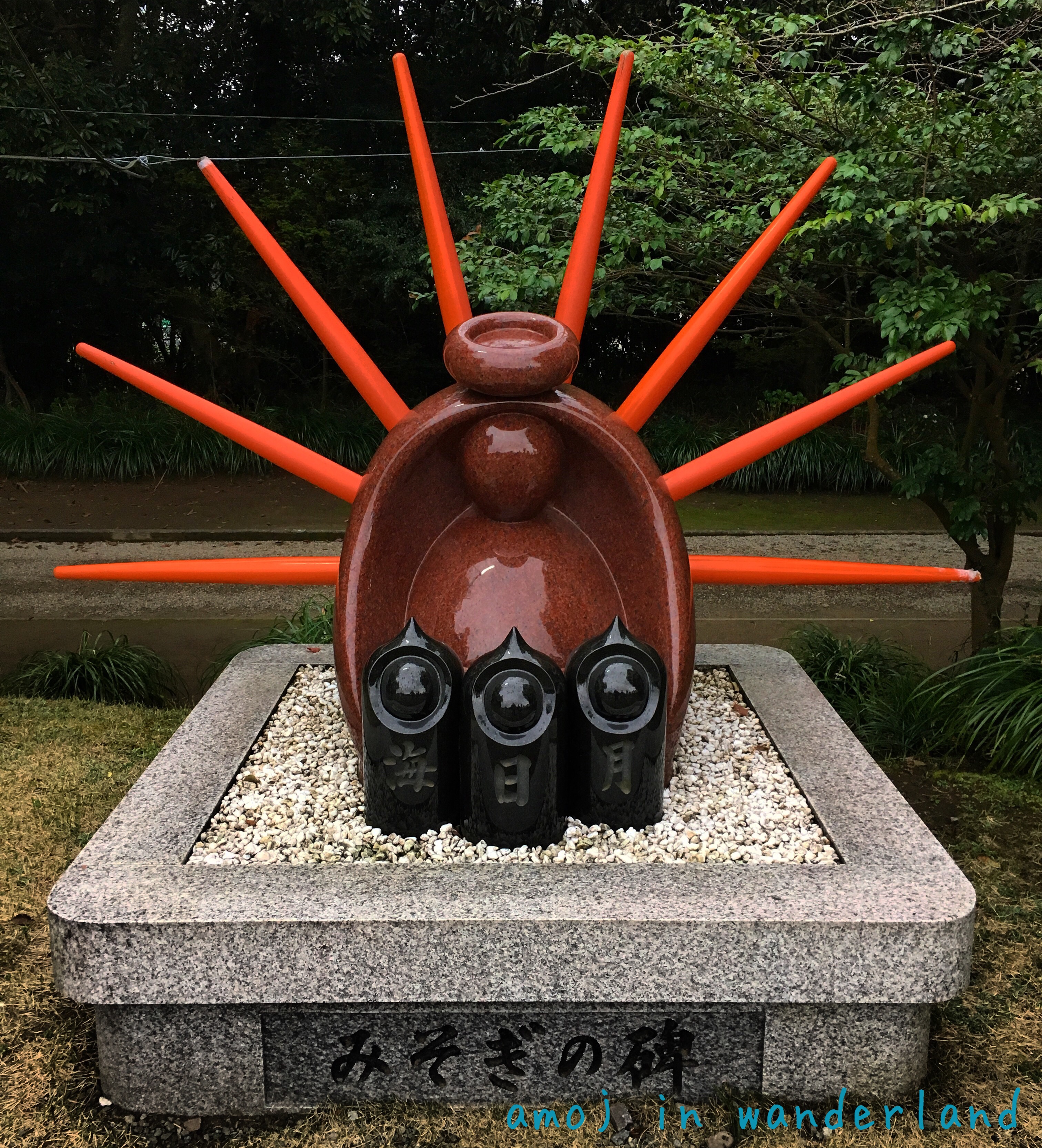 Then, we went to look for the pond the city advertised on its tourism pamphlets. When we saw it, it was not the same as in the pictures. The lotus was not in full bloom. The Misogi pond is significant in Japanese mythology. The God Izanaki bathed there to purify himself. This was after his journey to the land of the dead.
