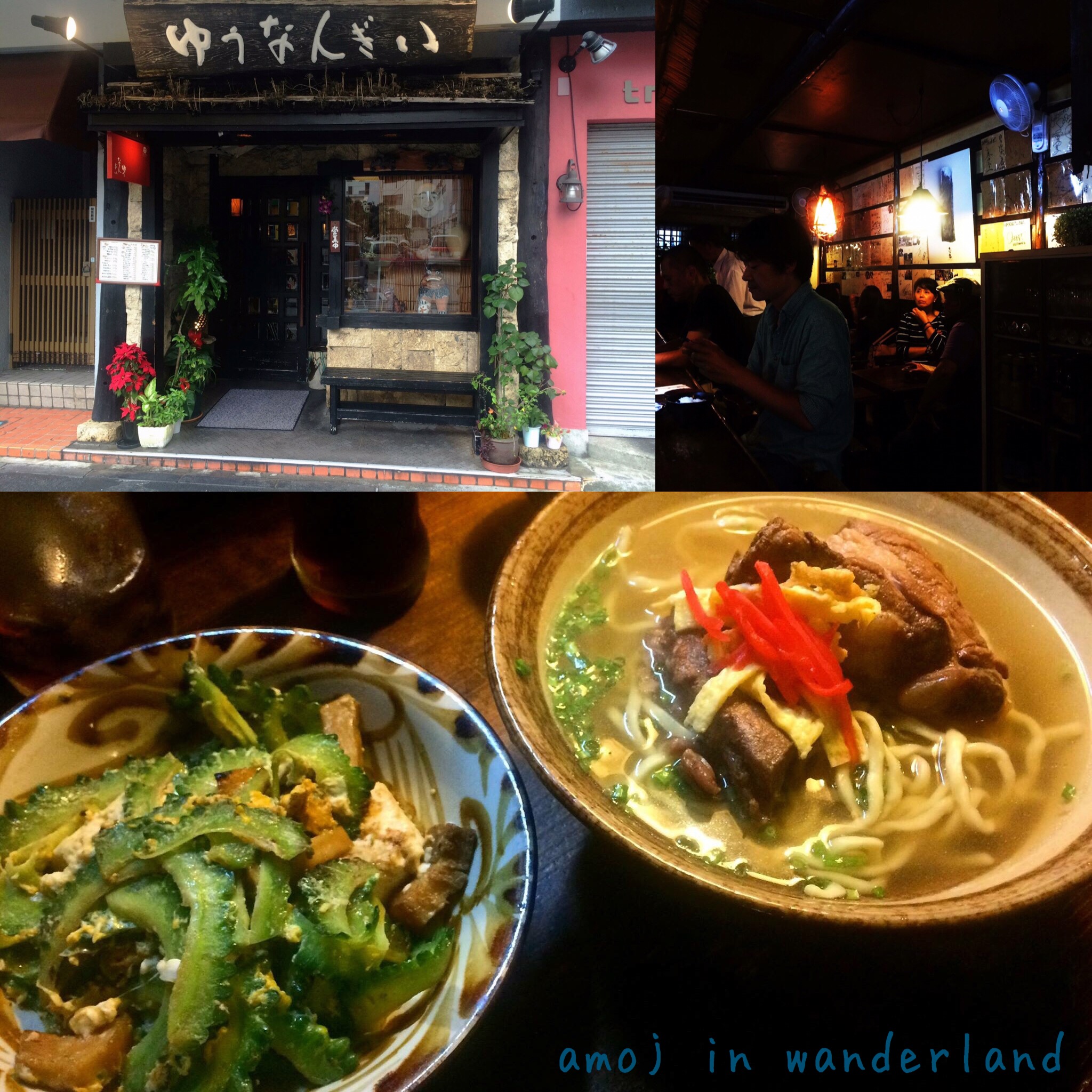 I went to Yunangi on my first day in Okinawa. I saw it by searching in the TripAdvisor app and Yunangi ranked 1st among the Naha restaurants. The restaurant is located on a sidestreet off the Kokusai Dori. It has a wooden sign with white lettering above its doorway.