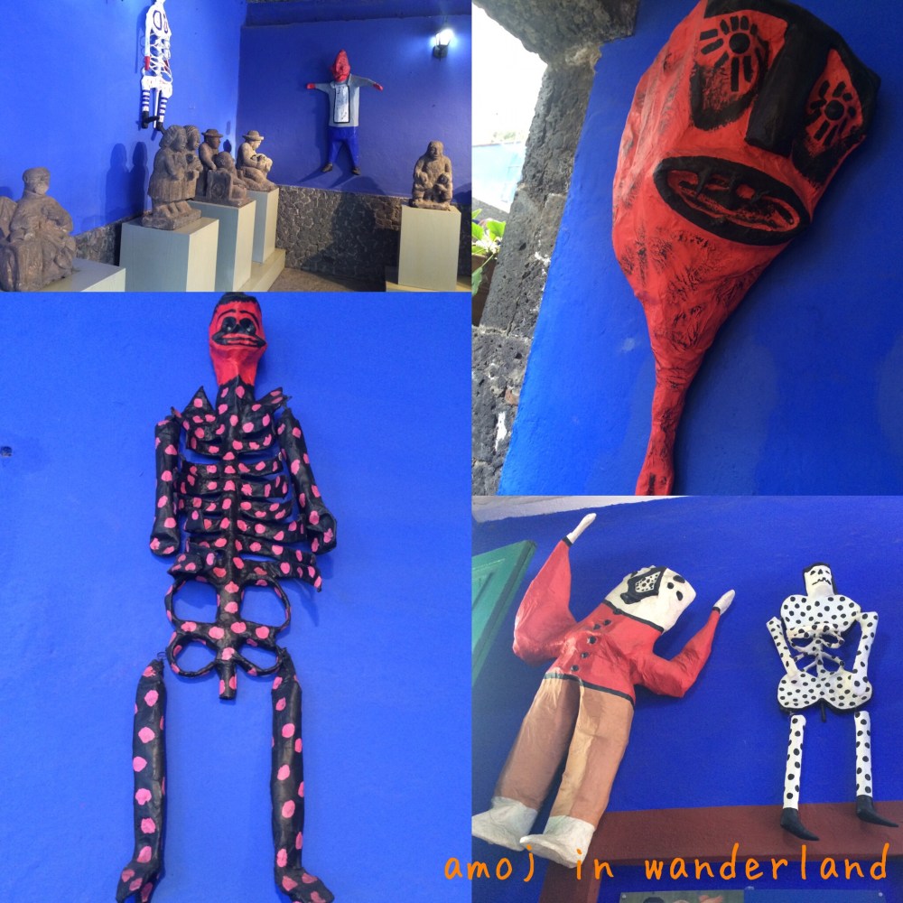 Displays outside the blue house.The exteriors of the blue house is with giant papier-mâché decorations such as skeletons. There are a total of ten rooms in the museum. I cannot take pictures inside the museum since they don’t allow it. The most memorable room for me was her bedroom. Near her bed is a photo montage of socialist icons Joseph Stalin, Vladimir Lenin, Karl Marx, Friedrich Engels and Mao Zedong. This clearly showed her flirtations with socialism.