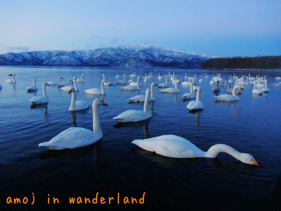 For the fourth day, I showed the Kussharo Lake with the whooper swans against a wintry backdrop. I already posted an entry about these regal-looking birds on this blog.