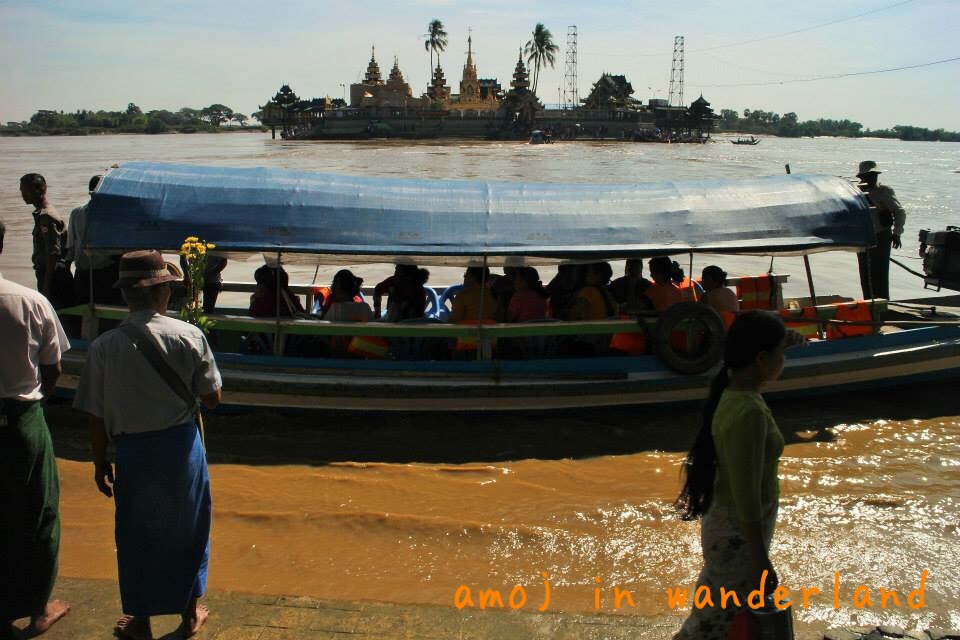 The ‘foreigners’ boat going to the Ye Le Pagoda.The pagoda is standing in a small island in the middle of Hmaw Wun Creek and the only way to go there is using a boat. As a foreigner, we were only allowed to use a larger boat as compared to the ones used by the locals. My friend told me it’s for safety and security reasons.