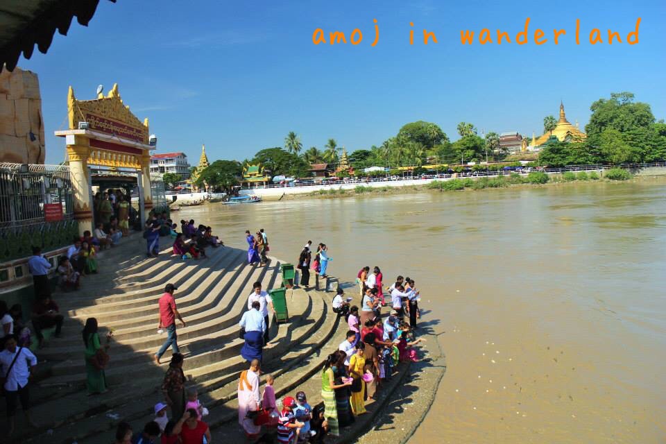 People feeding the fishes.My Burmese friend bought a plastic bag filled with bread crumbs-like food. I didn’t know what was it for until he told me to feed the fishes with it. The muddy brown water is filled with giant catfishes which are so adapted to people feeding them.
