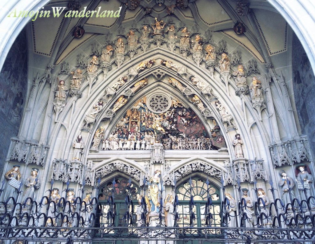 The most famous feature of the Bern Minster is the outstanding main portal with the Last Judgement. The sandstone masterpiece was made by a sculptor from Westphalia, Germany named Erhart Küng.