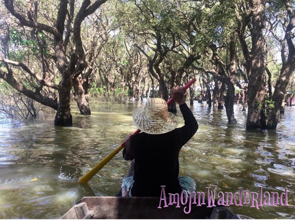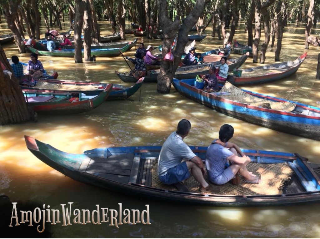 The boat took us first to the Flooded Forest. It is the part of Kompong Phluk having the largest mangrove forest in the region. The area is under water for most parts of the year. We had to transfer to a smaller rowboat with only 2 persons per boat excluding the boatlady. Our boatlady was singing while rowing our boat into the mangrove forest.
