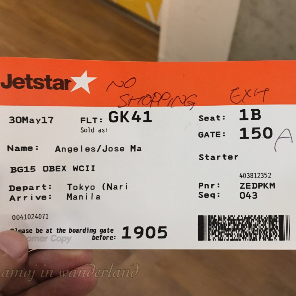 Well, it was my first time to use the LCC airline Jetstar internationally. I have used it for domestic flights in Japan like going to Osaka, Nagoya and Okinawa. I didn’t expect much as it was so cheap but their service was so ridiculous. I anticipate that they will be strict with the weight of luggages but it was beyond awful. During checking in, the lady at the counter asked me to weigh my handcarry bags (I have 2). They only allow 7kg, mine weighed 6.5kg. Then, the lady asked me not to shop anymore as it will exceed the allowed weight. The funny thing is that she wrote “No Shopping” on my boarding pass.