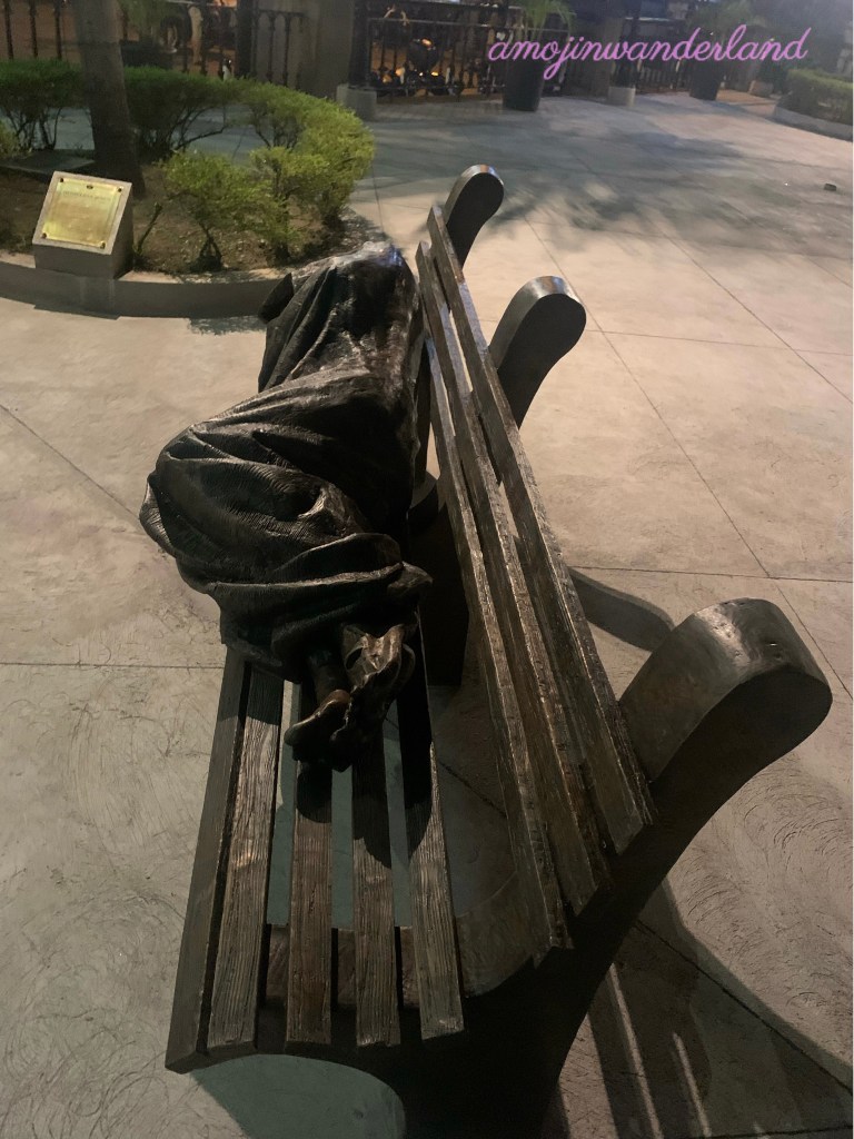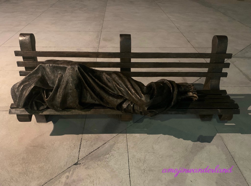 ATM, Wandering Flashnote: The “Homeless Jesus” Posted by amojamoja on April 10, 2022April 11, 2022 The sculpture “Homeless Jesus” was unveiled today, Palm Sunday, at the Manila Cathedral. The artwork by Canadian sculptor Timothy Schmalz depicts Jesus, recognizable by the wounds on his feet, sleeping on a street bench wrapped in a blanket. Sharing is Caring. Share on X (Opens in new window) X Share on Facebook (Opens in new window) Facebook More Share on Tumblr (Opens in new window) Tumblr Like Loading... Related