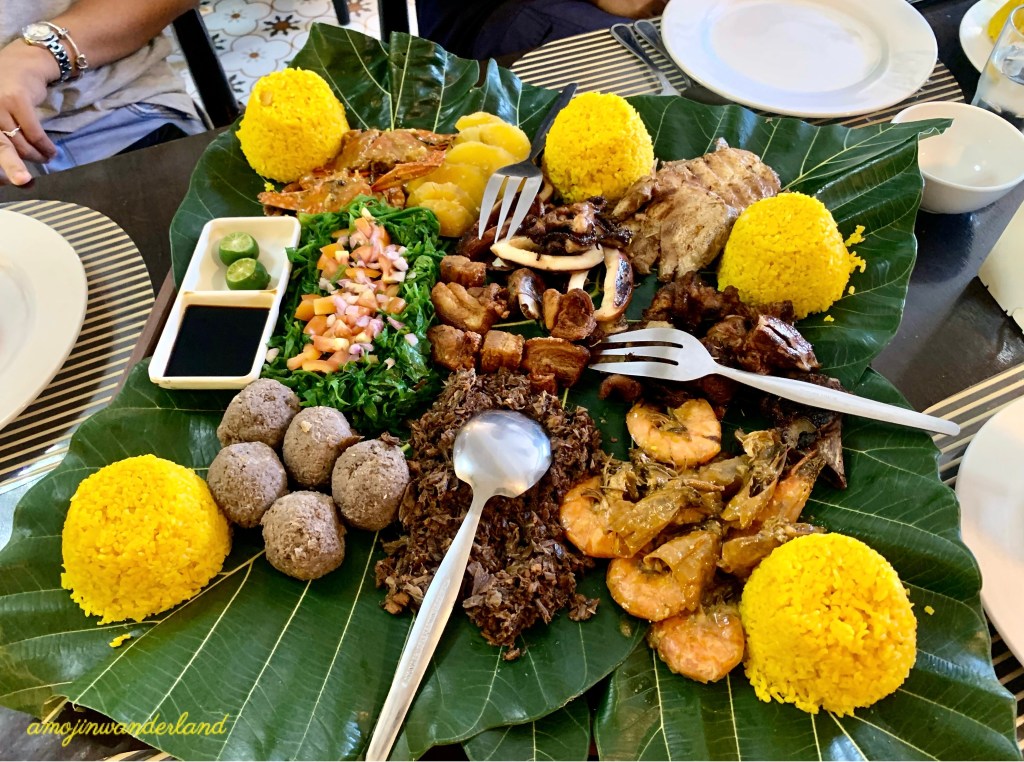 Pension Ivatan is a hostel-restaurant located in Batan Island. It is famous for its specialty dish called Ivatan Platter. Served in breadfruit leaves are a concoction of different Ivatan cuisines including Uvud balls made from banana trunk mixed with meat and flying fish; Luñis, the Ivatan version of adobo with pork liempo; Vunes, made from dried taro (gabi) stalks; Fern Salad, Grilled dibang or flying fish, and Turmeric rice. The staff was kind enough to explain the different dishes included in the Ivatan Platter.