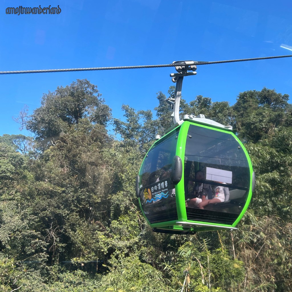Upon reaching our destination, we boarded the cable car at Sun Moon Lake. Covering a distance of 1.877 kilometers from the Sun Moon Lake Youth Activity Center to the Observation Tower of the Formosan Aboriginal Culture Village, the 7-minute direct cable car journey provides breathtaking views of Sun Moon Lake, along with the surrounding mountains and basins of Puli.