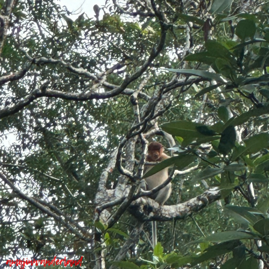 The proboscis monkey is native solely to the island of Borneo. These remarkable primates, characterized by their prominent pendulous noses and rounded bellies, are truly captivating as they move with grace through the trees lining the riverbanks. Despite being a bit distant, we were fortunate to observe several proboscis monkeys during our excursion.