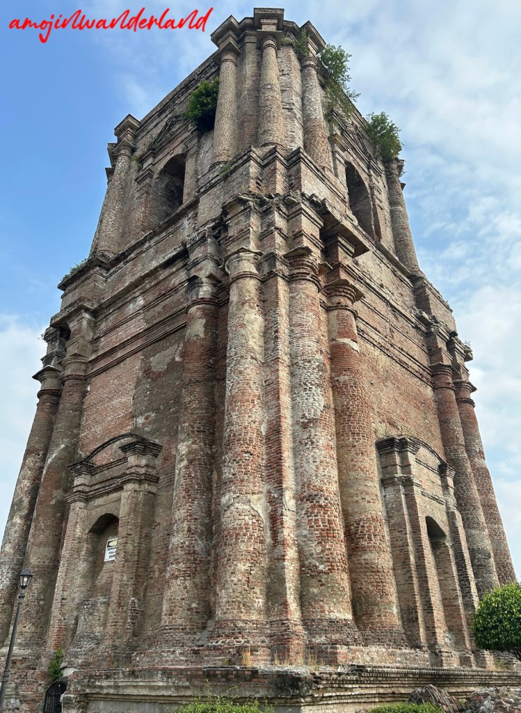 One of its most prominent and recognizable features is its centuries-old, domeless or “beheaded” bell tower, known as the Torre ti Bacarra. Also nicknamed the “Acrobatic Bell Tower of Bacarra”, the three-story tower stands about 50 meters (160 feet) tall and is made of coral bricks. Erected in 1828, it was originally topped with a dome. However, repeated earthquakes between 1931 and 1971 caused the dome to lean, and the 1983 Luzon earthquake eventually caused it to collapse entirely. The leaning structure became an iconic image of the church.
