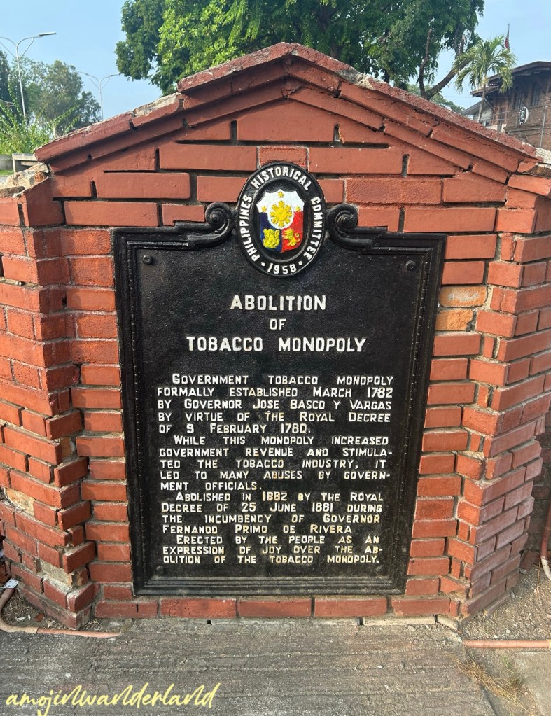 While exploring Laoag City in Ilocos Norte, I visited a lesser-known but historically meaningful site—the Abolition of Tobacco Monopoly Monument. Tucked along A. Bonifacio Street at the foot of Marcos Bridge, this modest obelisk built of clay and brick stands quietly as a reminder of a century-long struggle that deeply affected the lives of Ilocano farmers.