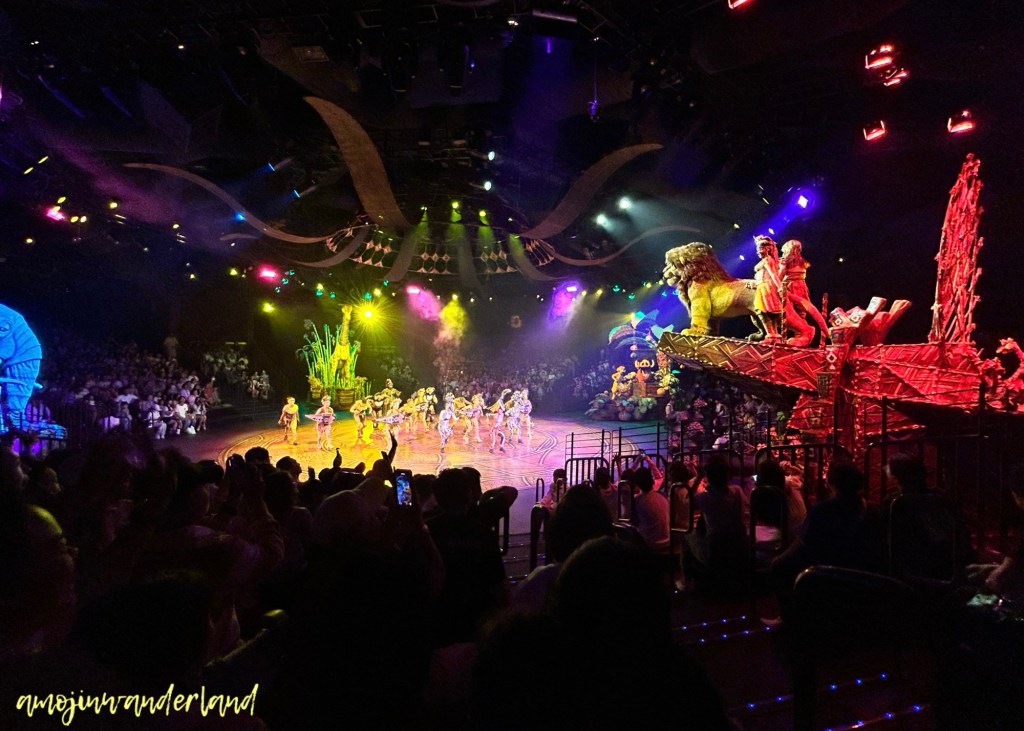 But the show that truly impressed me was the Festival of the Lion King. It was easily one of the grandest and most theatrical experiences in the park. Held in a large circular indoor theater, the show featured towering set pieces, elaborate costumes, fire dancers, acrobats, and powerful live singing. Each section of the theater was themed after different animal groups, and the performers entered from all angles, making the whole experience immersive. It wasn’t just a simple retelling of the movie—it was a full-scale stage production with its own energy, movement, and heart. I was genuinely amazed by the scale and quality.