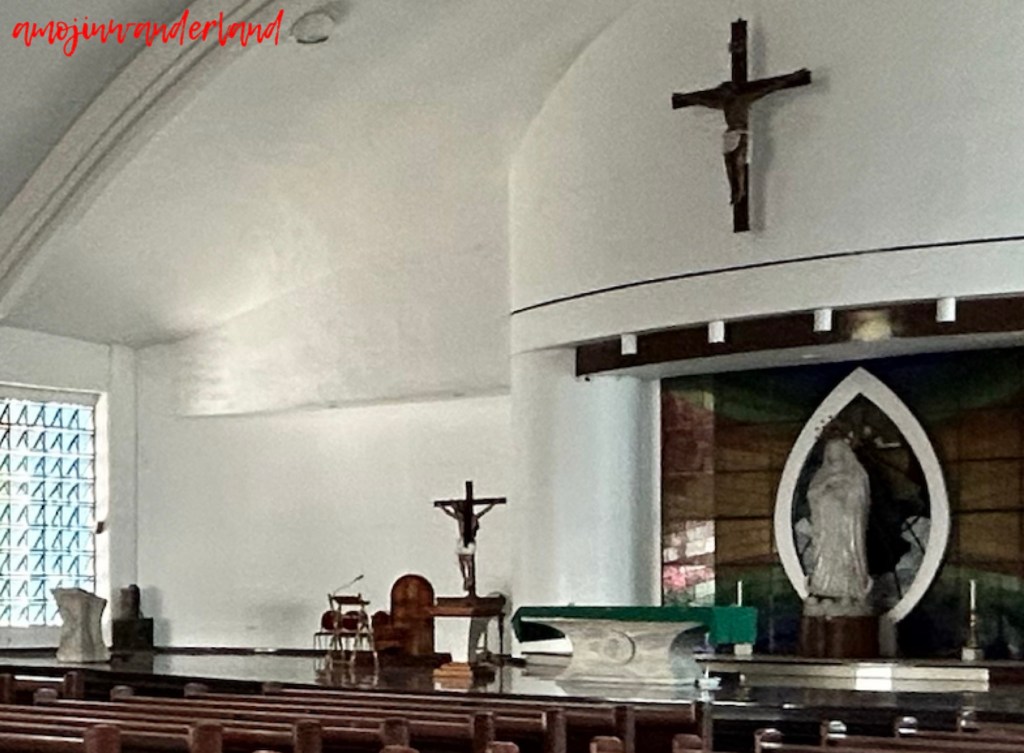 The day chapel on the ground floor, where I attended Mass, is used for weekday services, offering an intimate space for prayer and reflection. In front of it stands the baptistery, which holds a relic of Our Lady of the Pillar, Zamboanga’s patroness and protector.