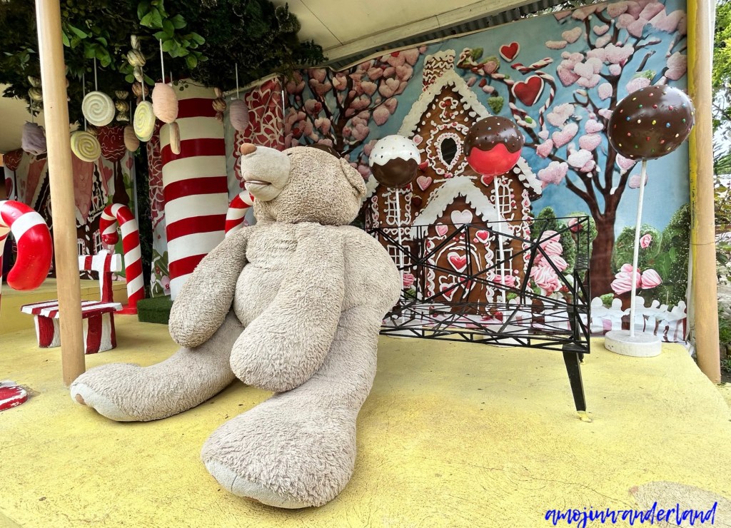 Inside the park, candy canes, gumdrops, gingerbread figures, oversized teddy bears, and miniature gingerbread houses fill the surroundings. The design is clearly geared toward children, but the overall setup feels fairly basic. It doesn’t take long to go through, and the experience is more about visual cues and photo stops than any sense of immersion or discovery.