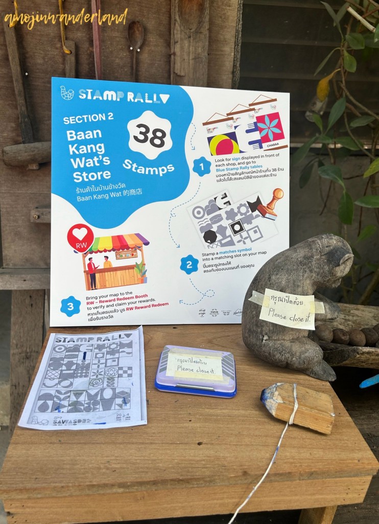 During our visit, entry to a large portion of the art village was tied to a “Stamp Rally” activity. While Baan Kang Wat is generally known as a free and open space, this activity required visitors to purchase items or complete specific tasks at participating shops to collect stamps and gain access to certain areas. For visitors who enjoy interactive activities or shopping, this might add an element of fun. Personally, I wasn’t particularly interested in buying items or completing the required steps just to finish the stamp rally, so I chose to explore only the freely accessible sections.