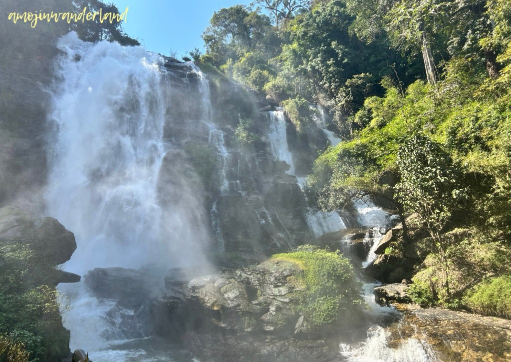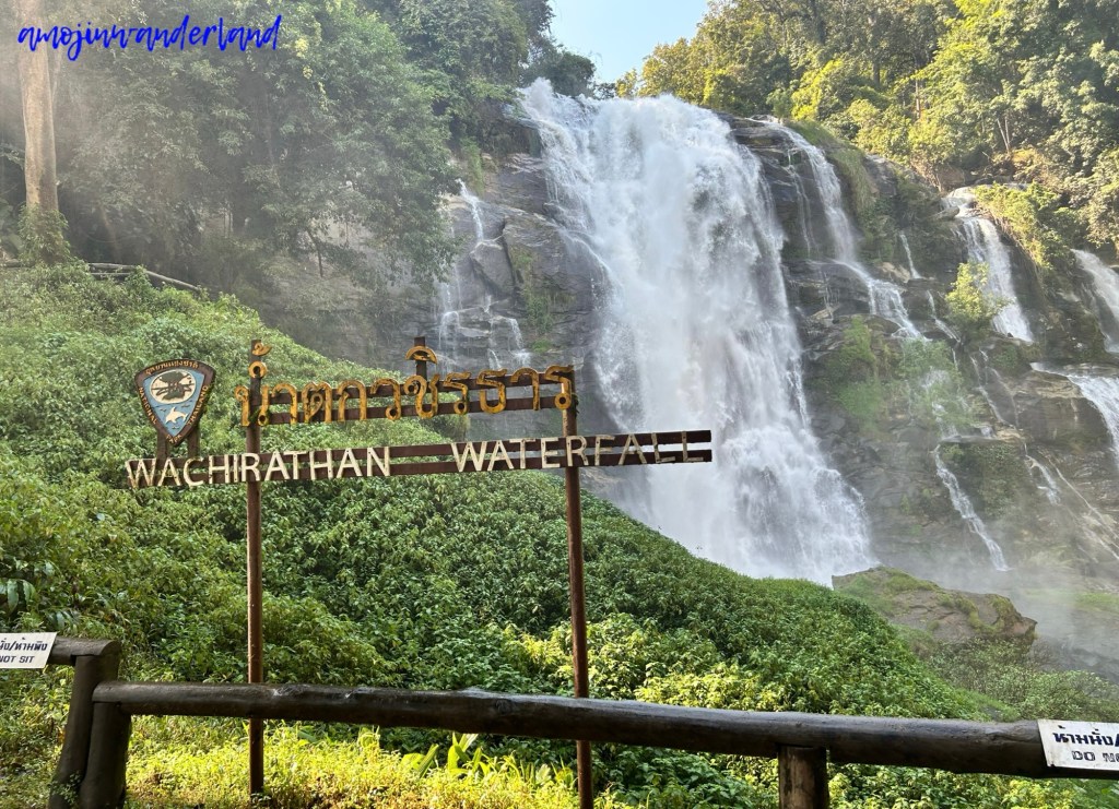 Wachirathan Waterfall is a prominent natural attraction in Chiang Mai and one of the most visited sites within Doi Inthanon National Park. It was our first stop when we visited Doi Inthanon, and it provided a clear introduction to the park’s landscape and climate. The waterfall drops from a height of about 80 meters, with a strong, continuous flow of water cascading over a rocky cliff into the basin below. Fine mist rises from the impact, cooling the surrounding area and occasionally limiting visibility near the base.