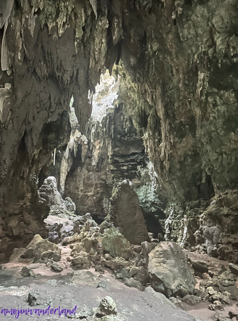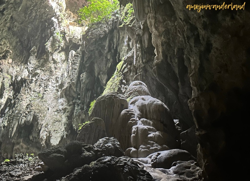 Access to the cave begins with a climb up a series of concrete steps leading to its entrance. Inside, the cave is composed of seven chambers, each shaped by natural processes over thousands of years. Limestone formations such as stalactites and stalagmites are present throughout, formed through the gradual deposition of minerals from dripping water. Each chamber has slightly different features, depending on how water moved and accumulated over time.