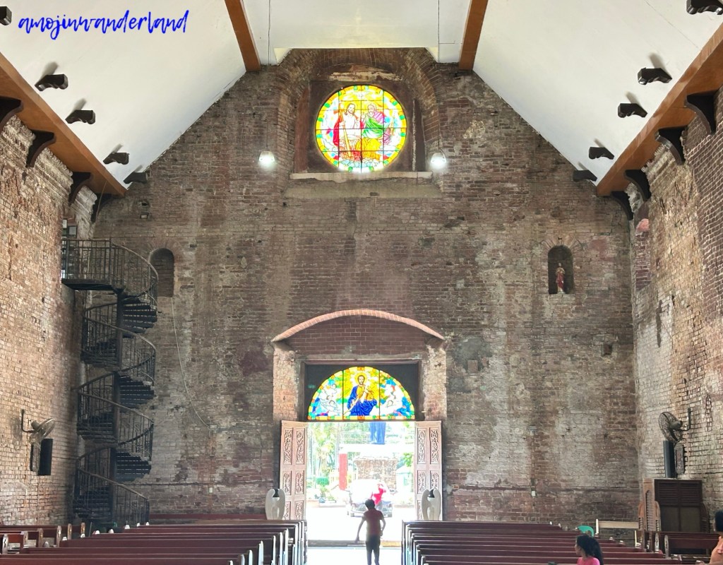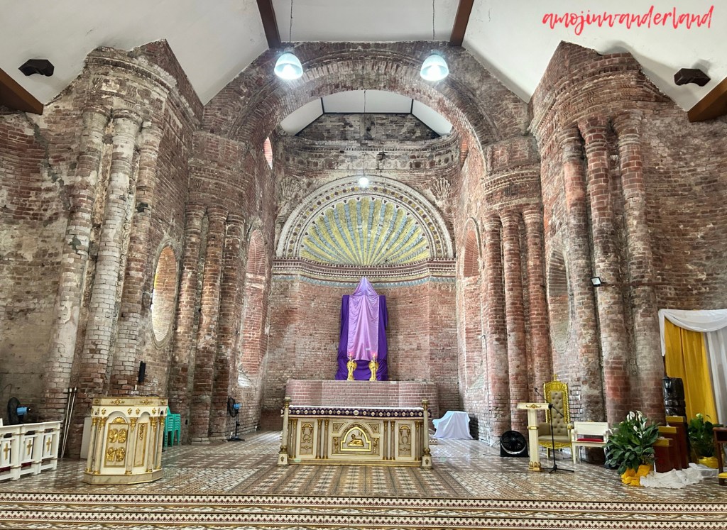Inside, the church maintains a consistent aesthetic with its exposed brick walls, creating a sense of continuity from exterior to interior. The space relies on the natural texture and color of the brick, giving it a simple yet historically grounded atmosphere.